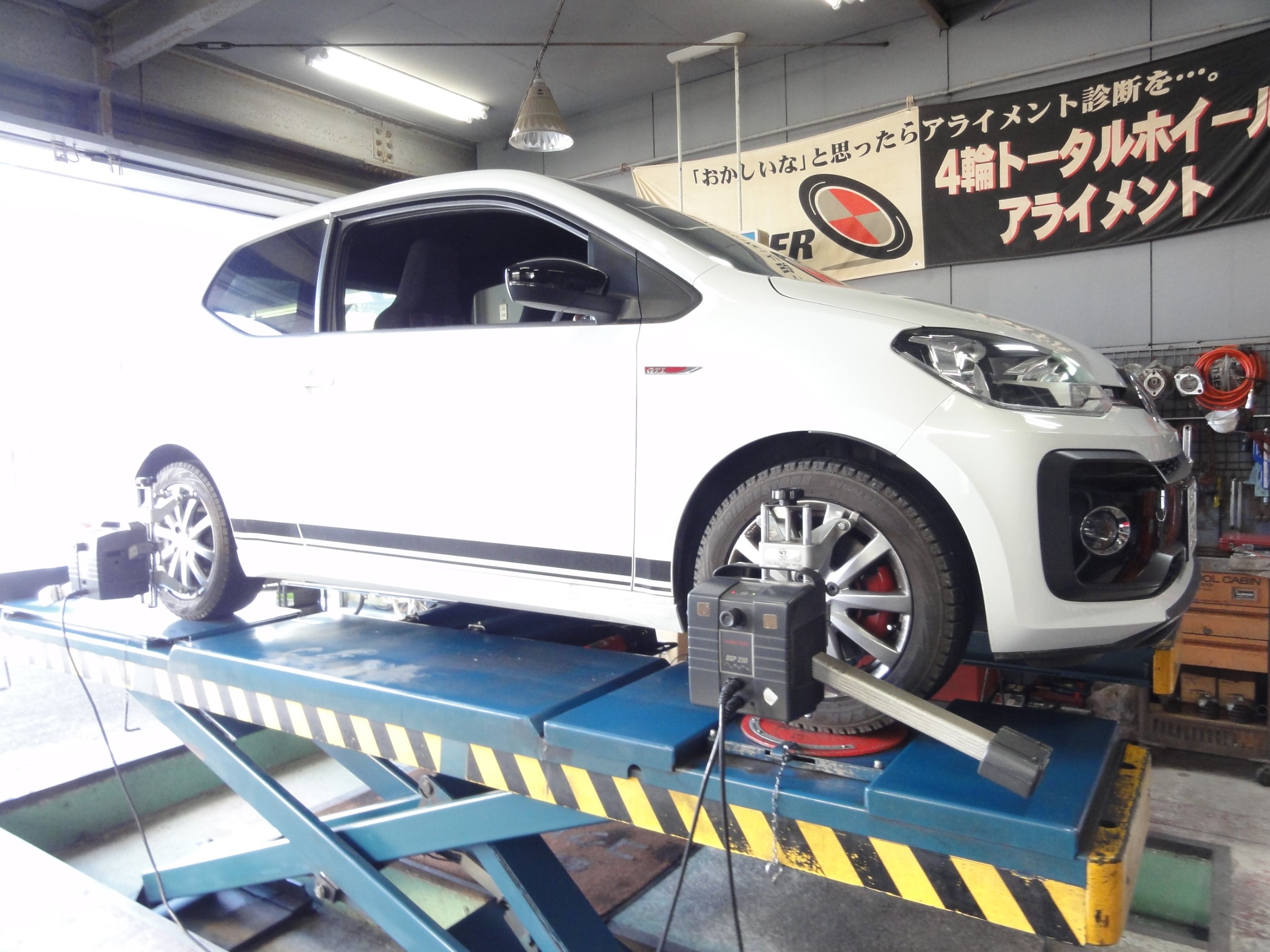 2021年2月4日 ツイート 自動車鈑金工場様からの御依頼により フォルクスワーゲンup!(GTI)の アライメント測定&調整作業を行いました。 この車の標準アライメント調整箇所は フロントのトーのみの調整となります。 いつも御利用ありがとうございます。 またの御利用お待ちしております。 Prev Next