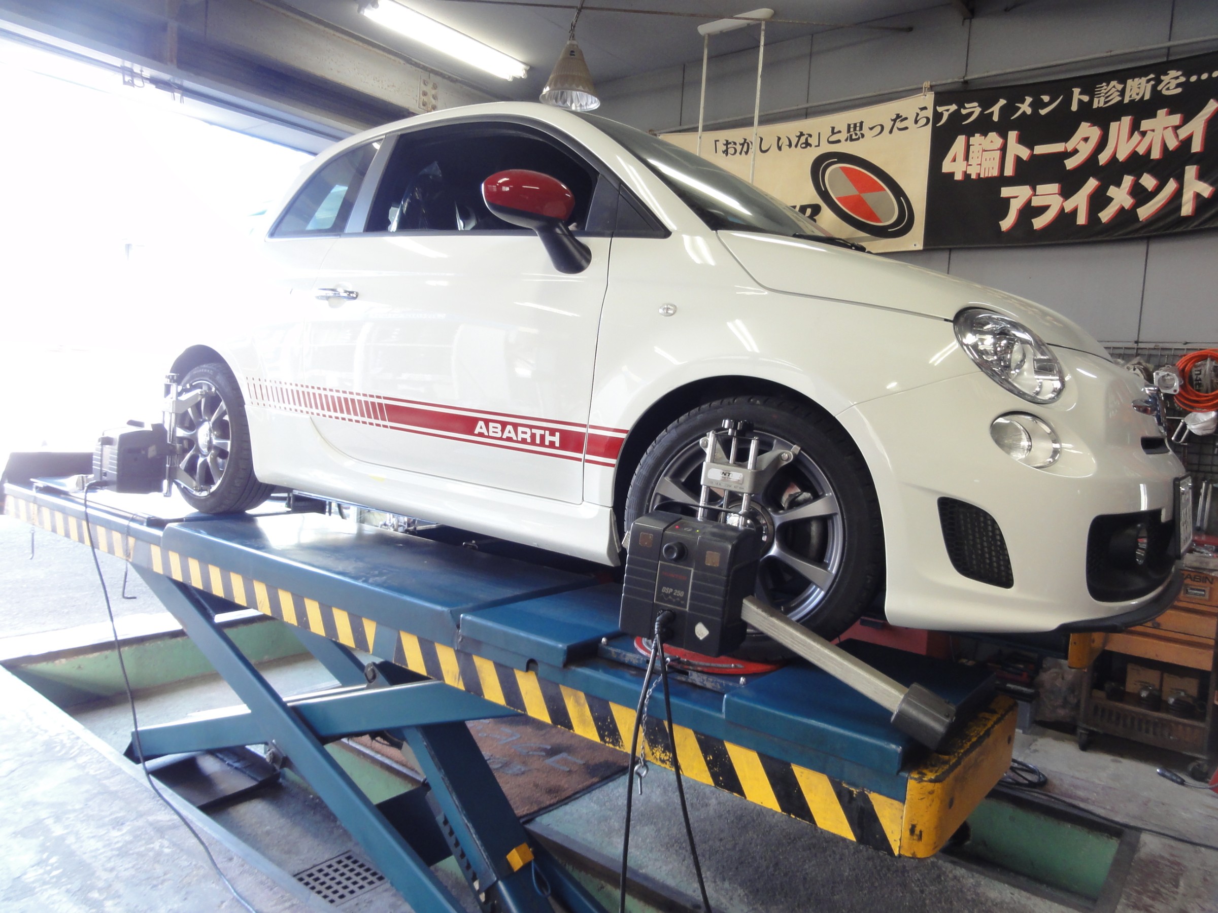 2021年3月26日 ツイート 自動車鈑金工場様からの御依頼により アバルト 595の アライメント測定&調整作業を行いました。 この車の標準アライメント調整箇所は フロントのトーのみの調整となります。 いつも御利用ありがとうございます。 またの御利用お待ちしております。 Prev Next