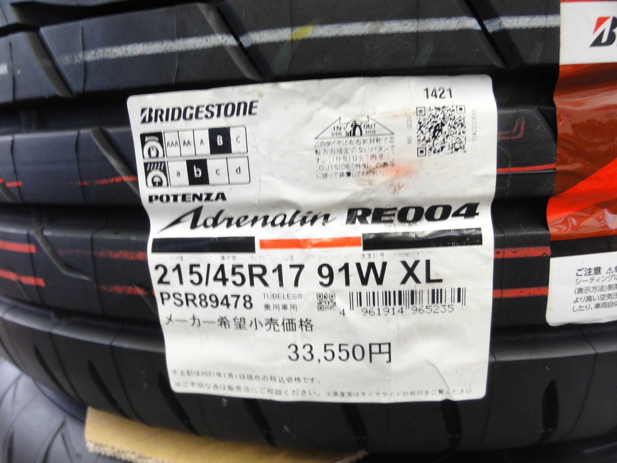 「ポテンザ アドレナリン RE004」へと交換作業を行いました。