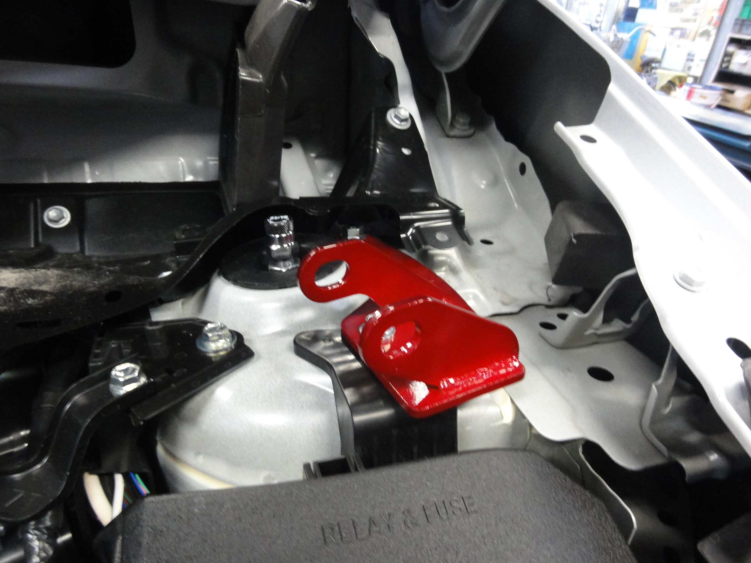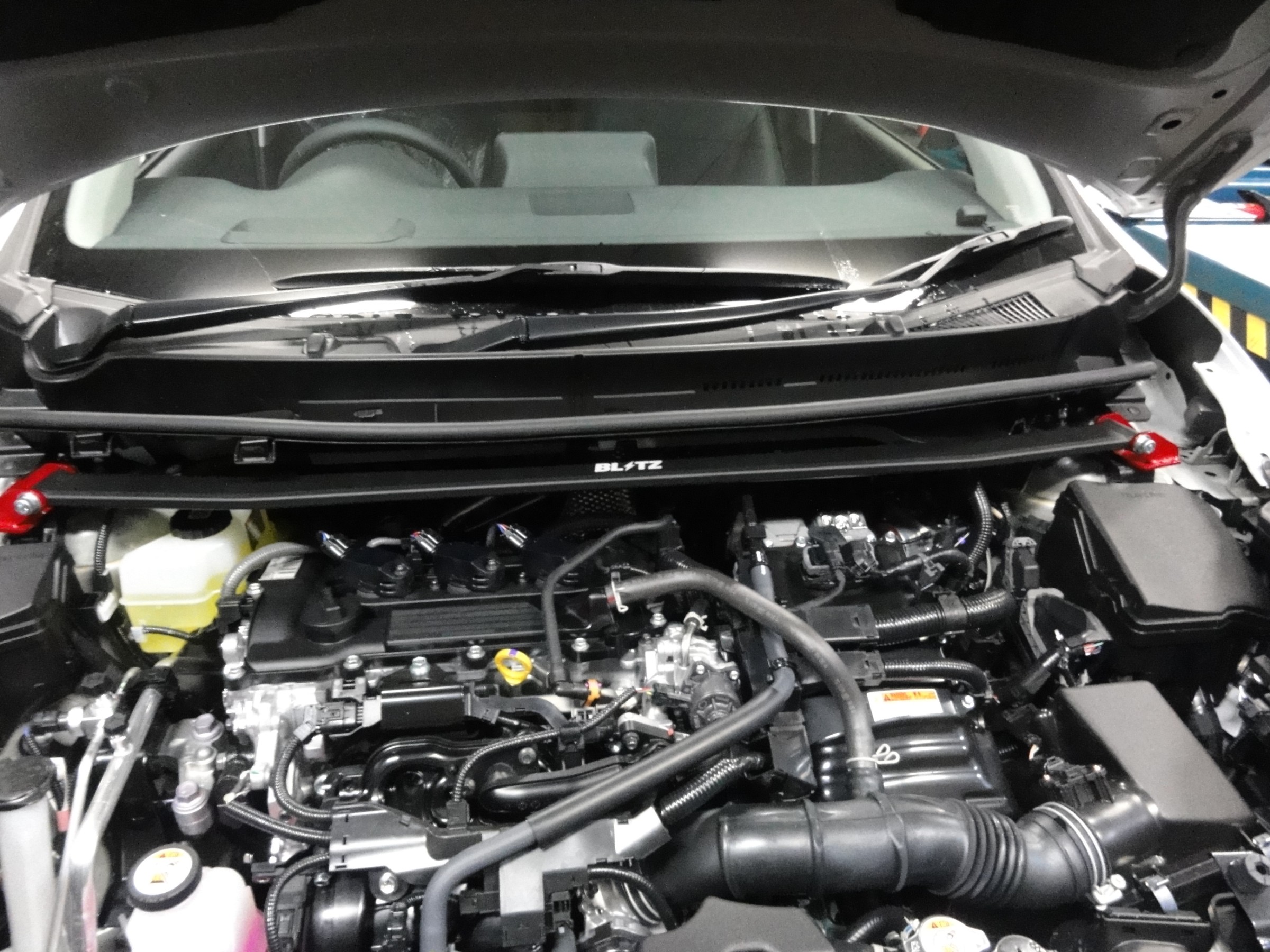 フロントのストラットタワーバーを装着致し、
