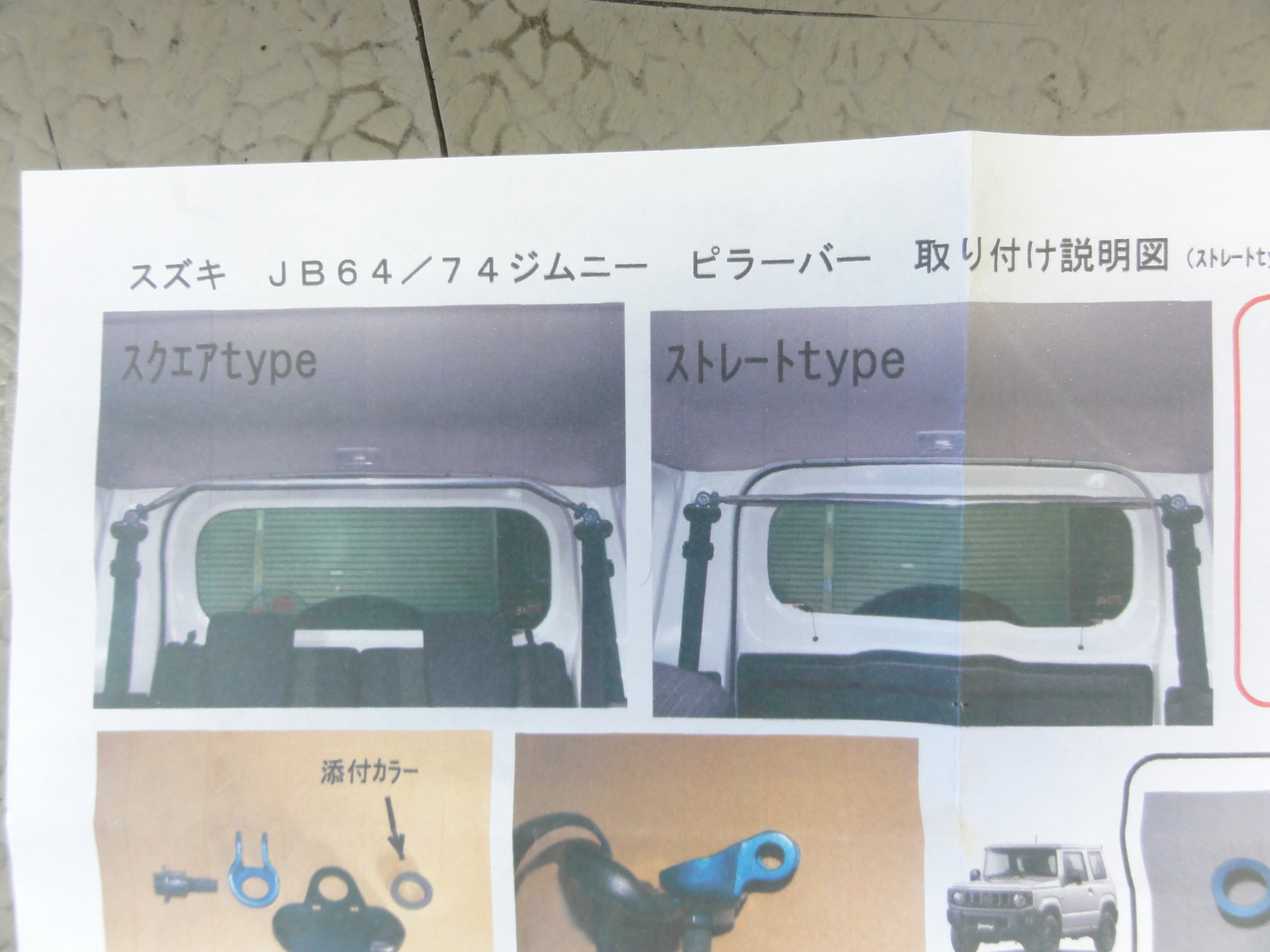 オプションパーツのピラーバーパッドを装着して