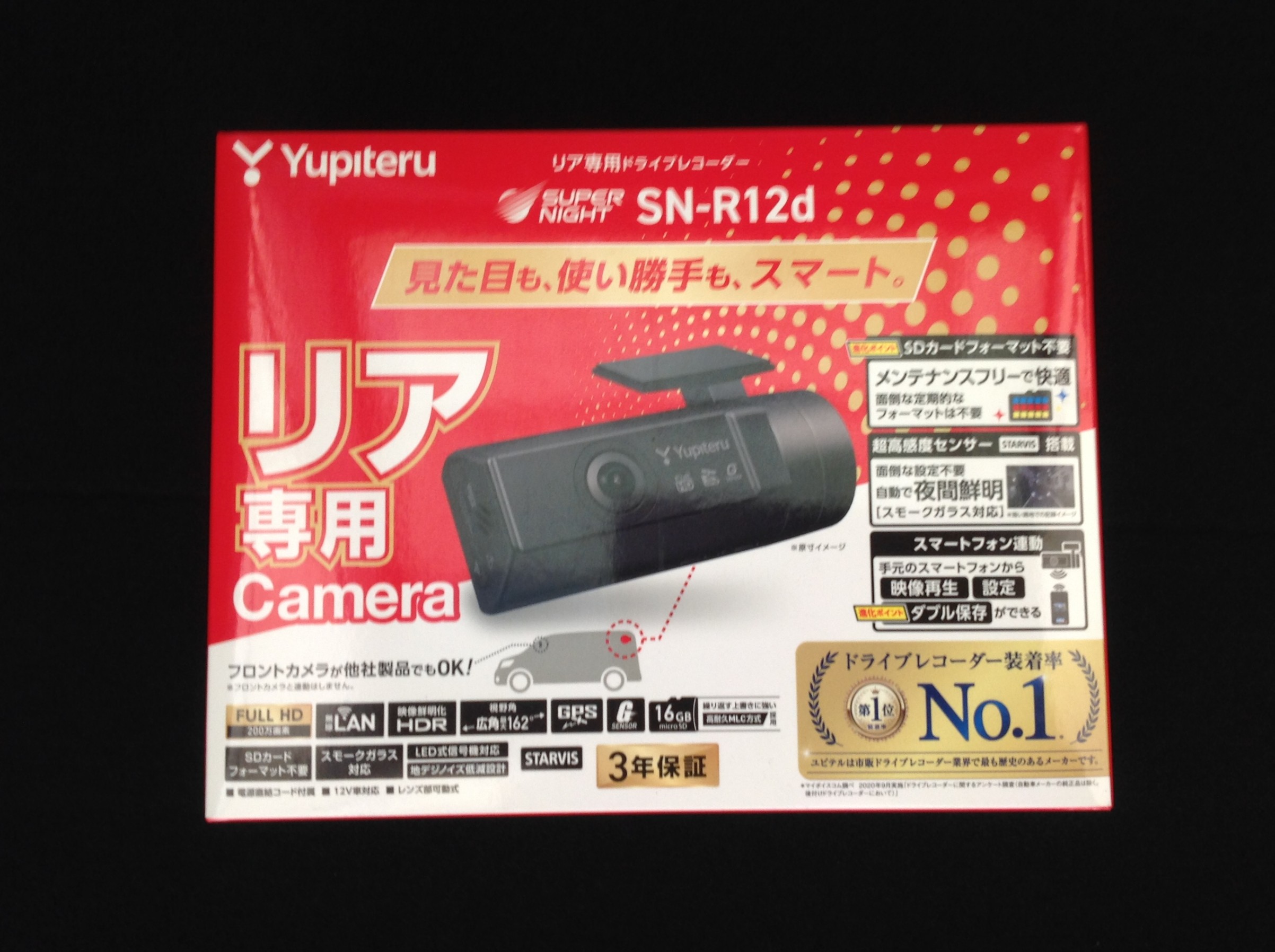 今回はリアカメラドラレコの装着をご依頼頂きまして、ユピテルさんのSN-R12dを装着させて頂きました ♪