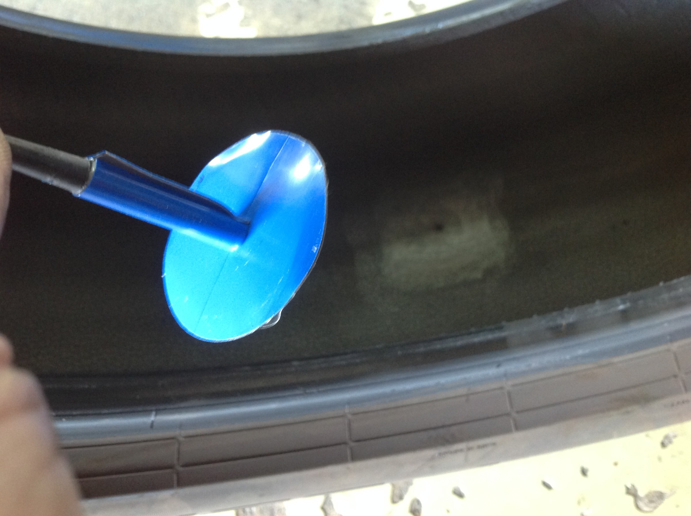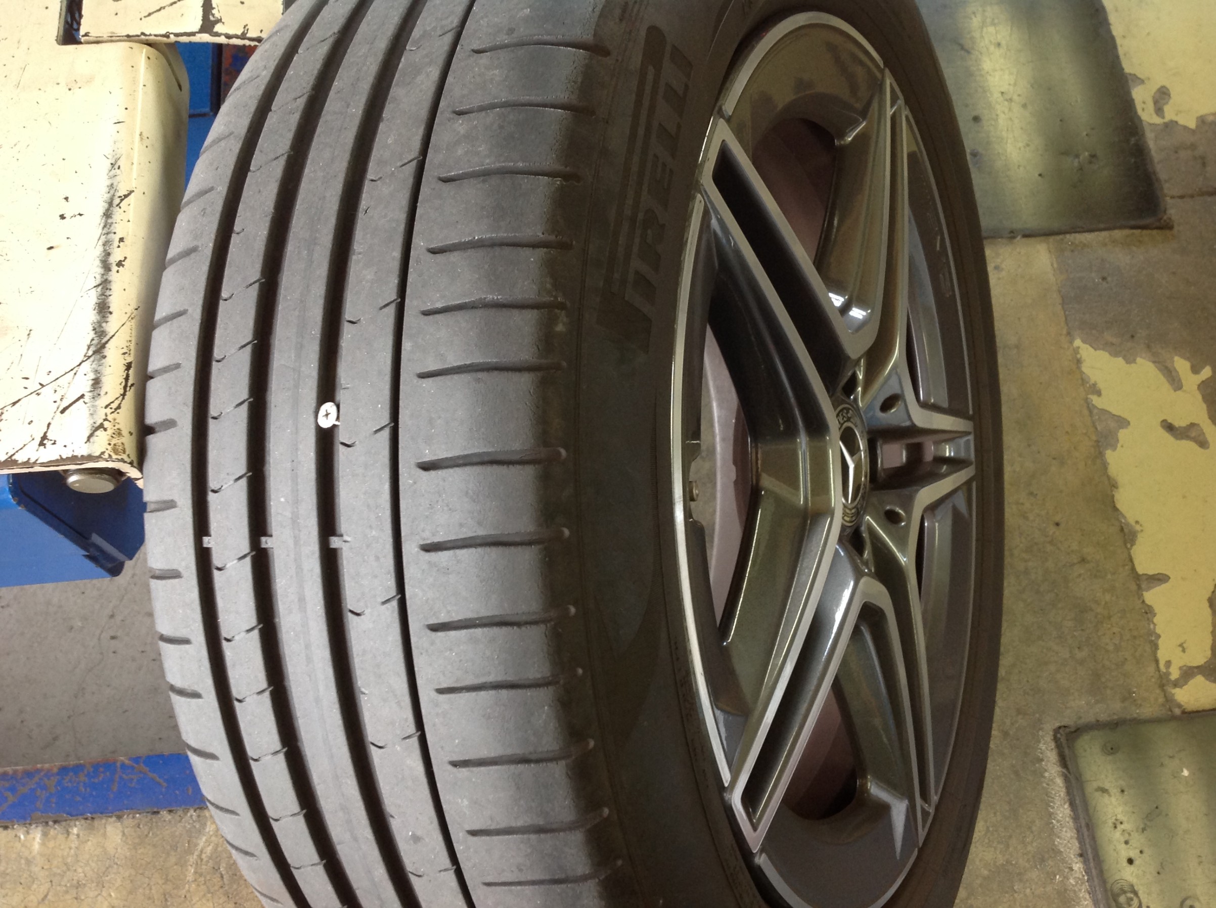 空気圧警告の指示通りで、ビスが刺さってるのを発見… (^_^;)
