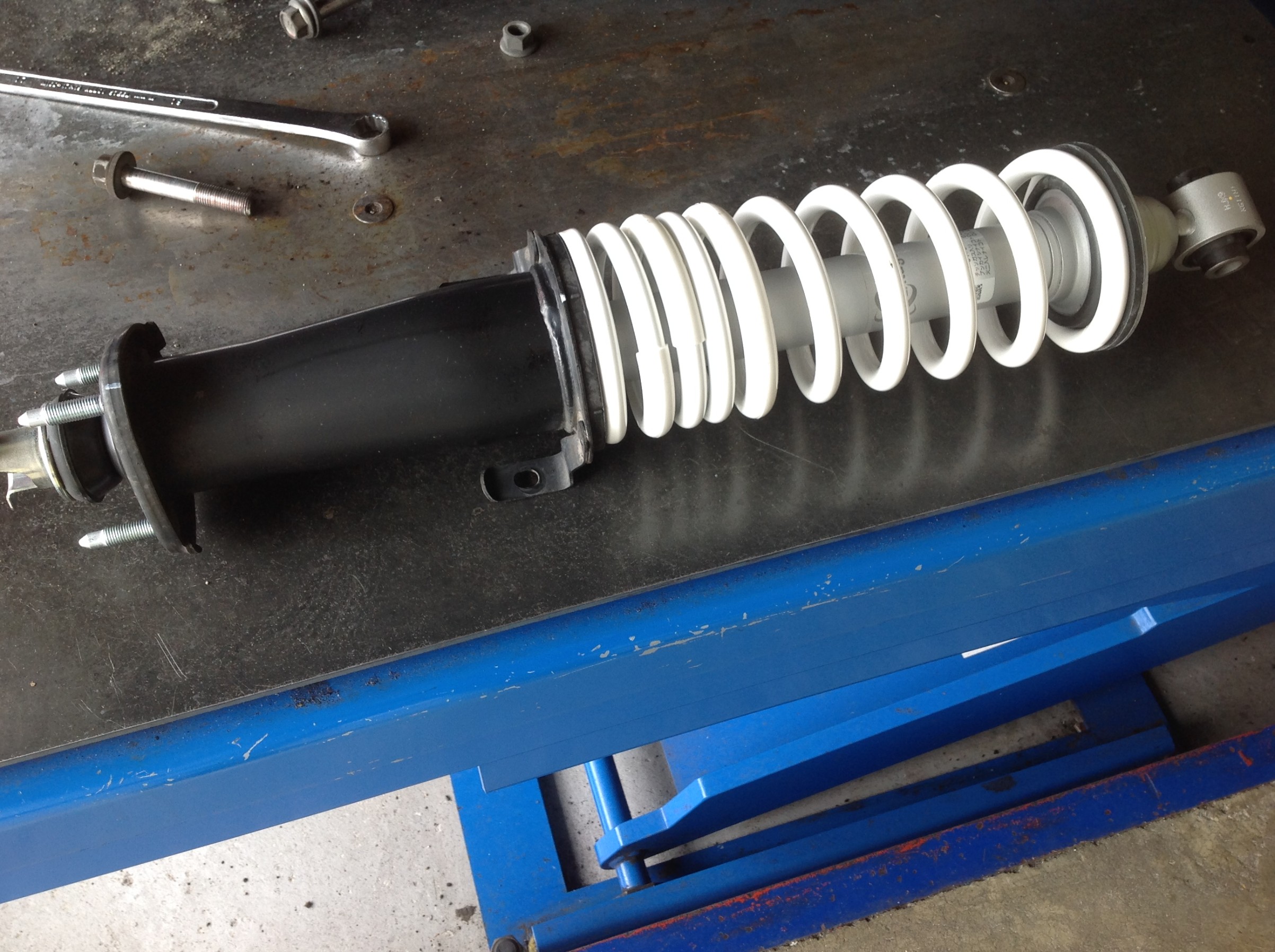 ブッシュの一時開放と1Gでの締め直しも行い、純正AVSも元どおりに戻し組み上げていきます(*^^)v