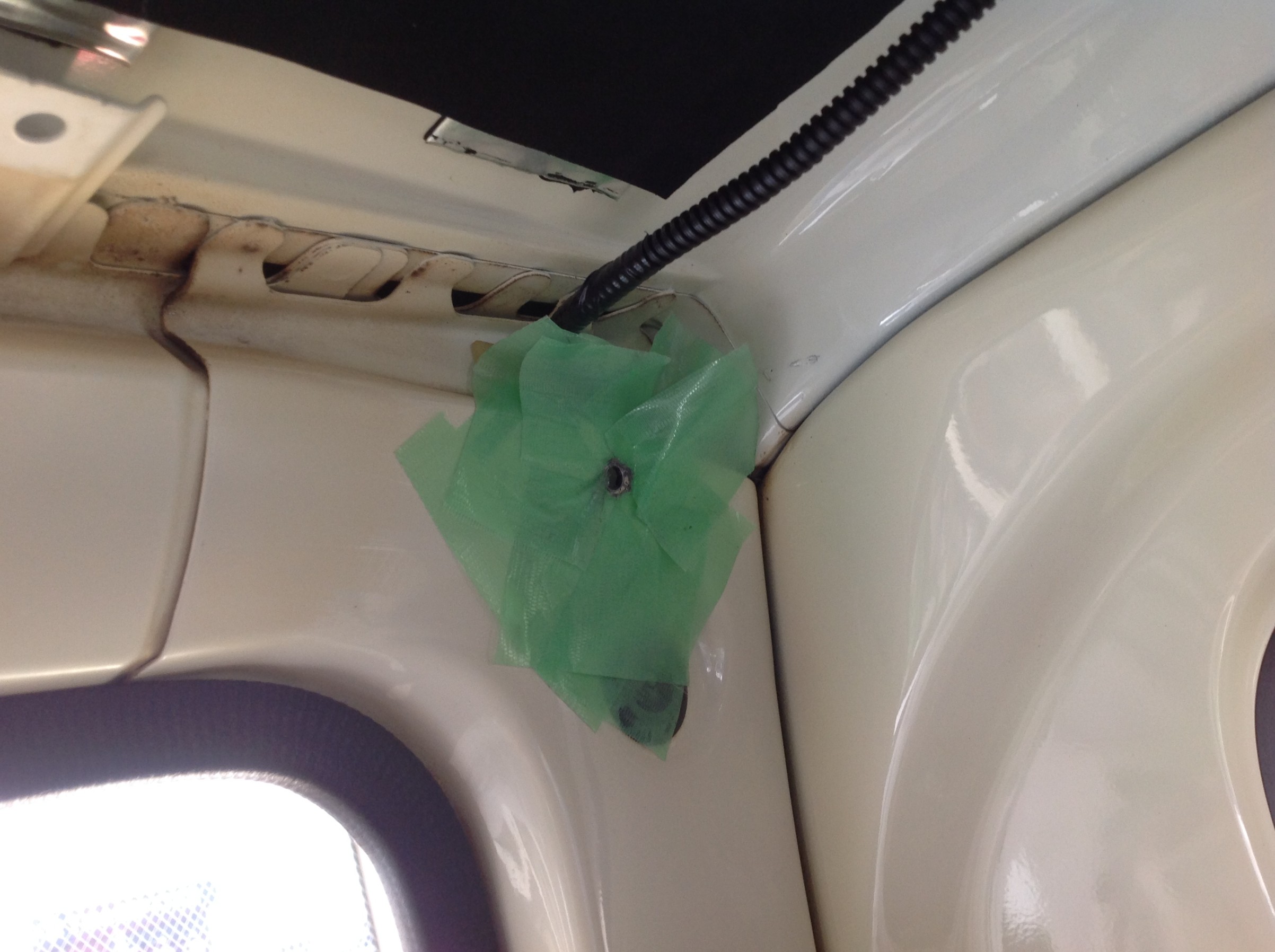 装着前には前もって天井の内装を外させて頂いてまして、