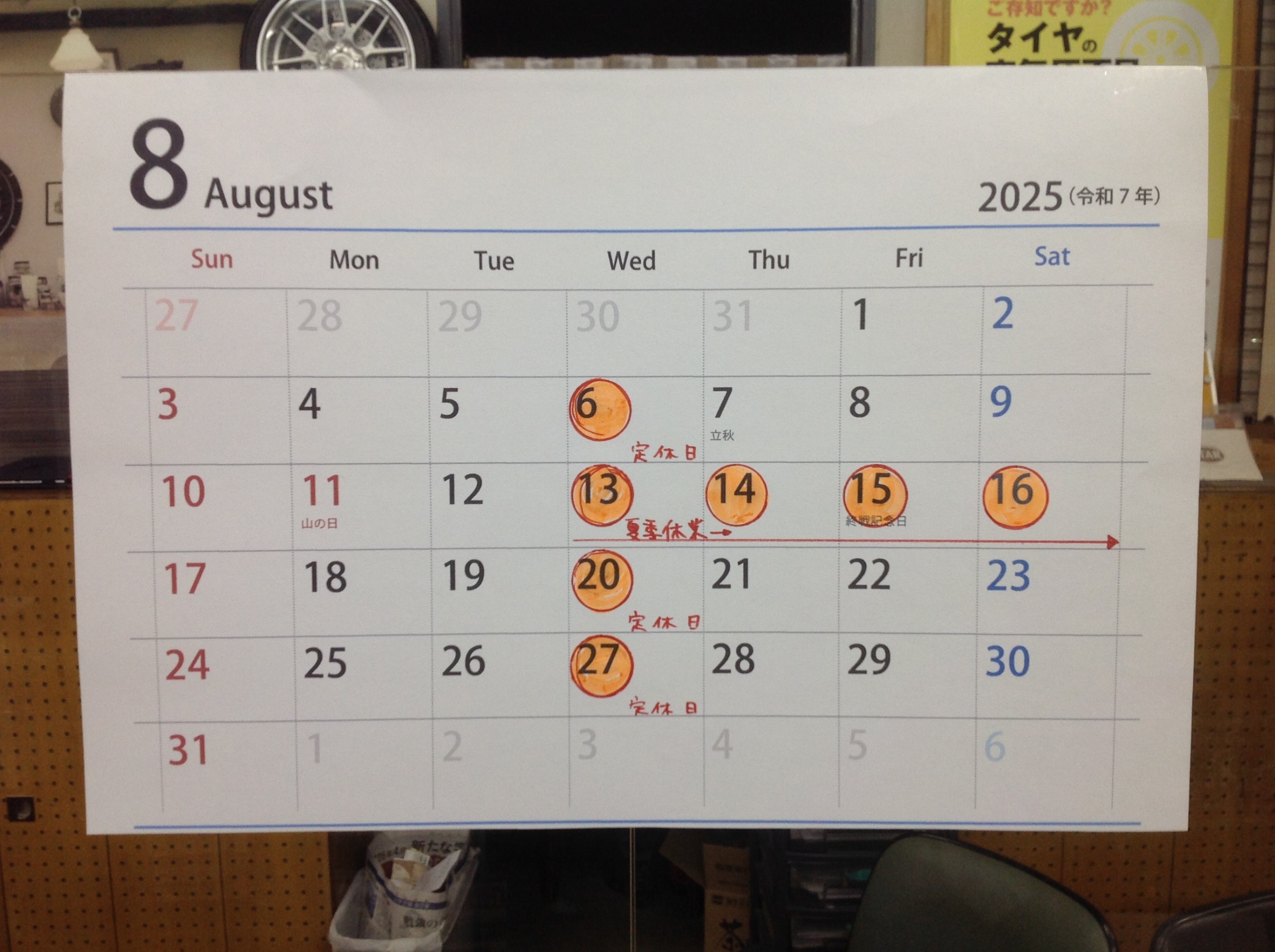 8月6日(水) 定休日