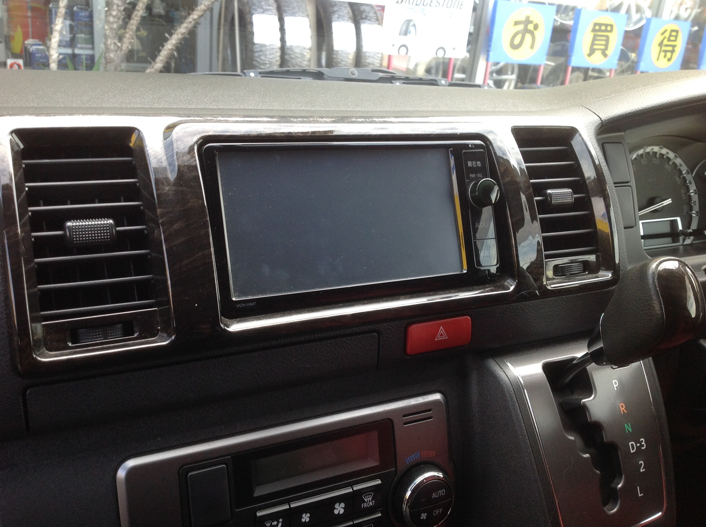 標準的なスタンダードナビに純正フリップダウンモニターの組み合わせ。