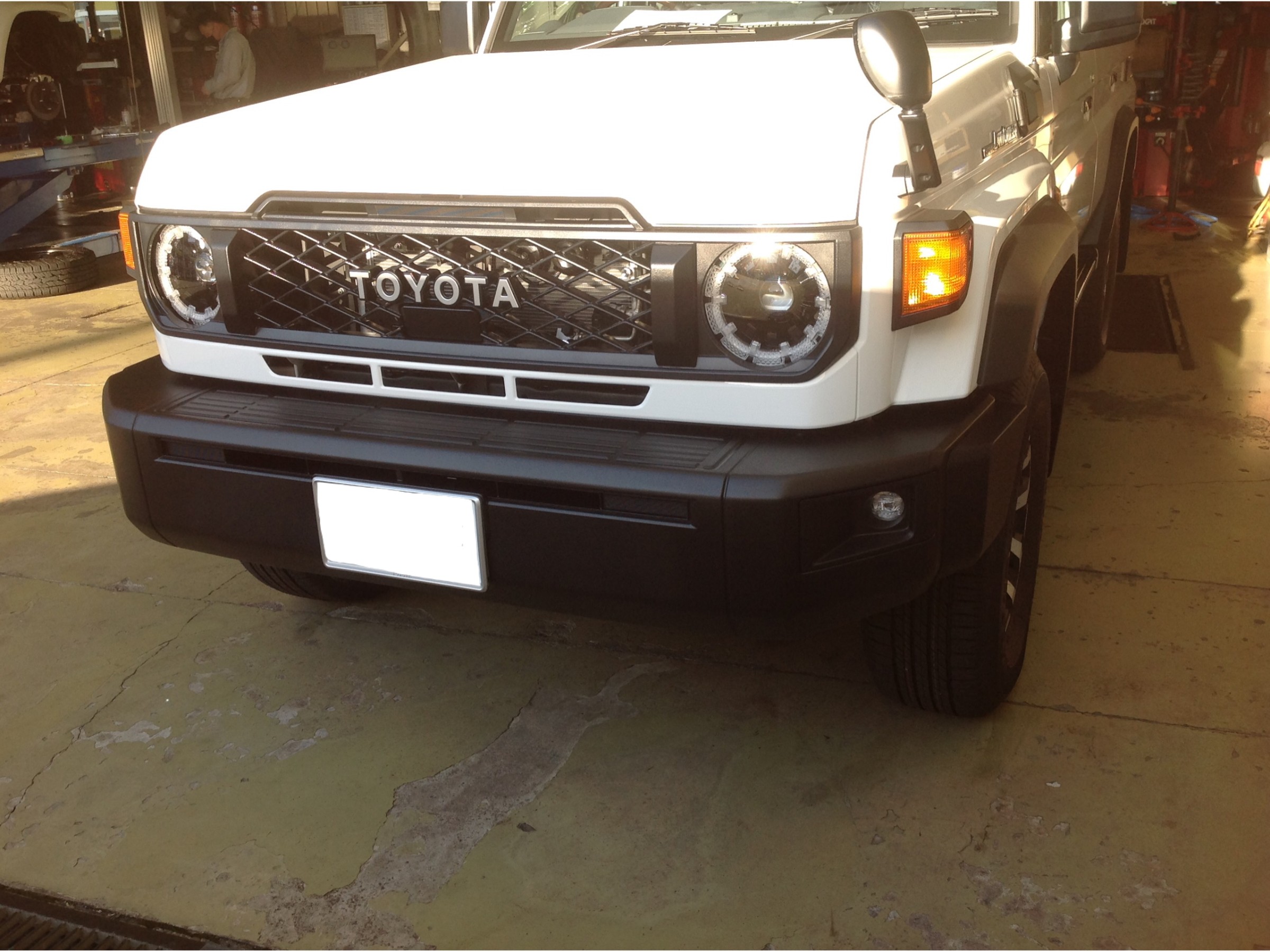まずはナビの取付でご入庫の新車のランドクルーザー70さん ♪