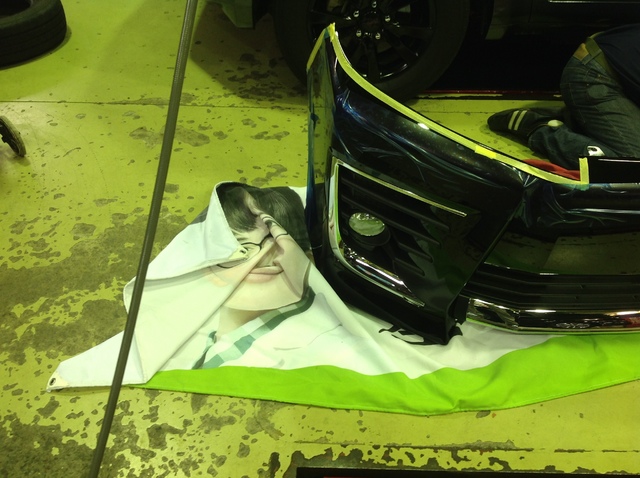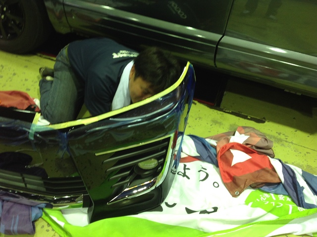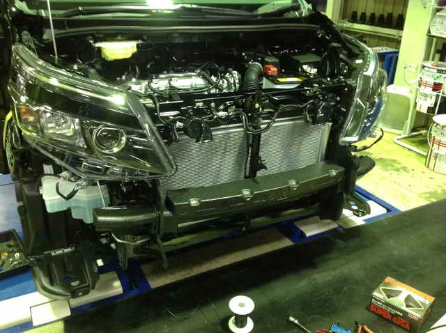 VOXYさんはバンパーが外され、ホーン & グリルの仮合わせ & LEDフォグ交換!