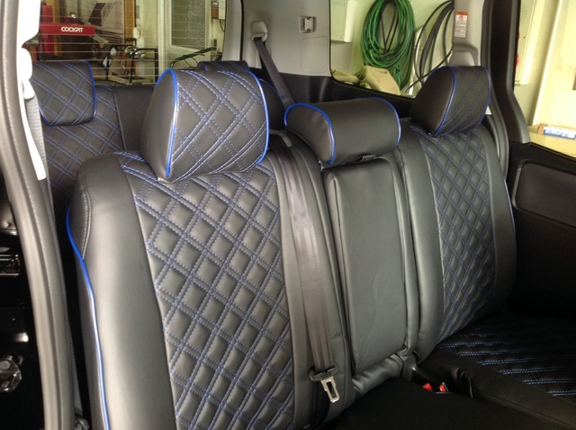 元々ブルー系の内装なので、シートカバーもブルーのステッチをチョイス!