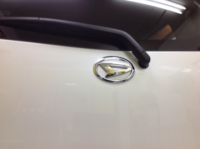 メーカーラインでの装着だと、ワイパー下のエンブレム部分が膨らみをおびて、