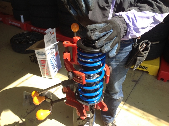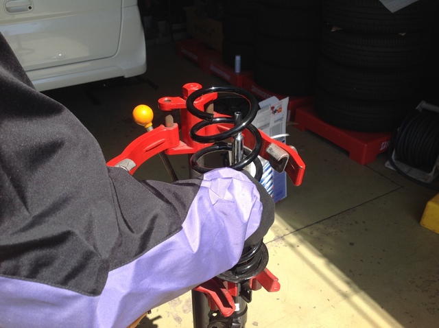 長ぁ~いノーマルスプリングを、専用工具を使って安全に分解します♪