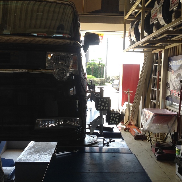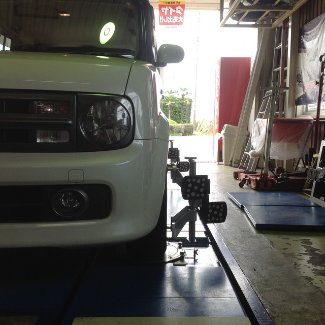カヤバさんのショックに交換&慣らし終了の、キューブさんのアライメントが続いています♪