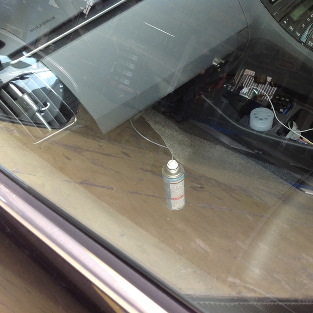 ファンが回っているのを確認しながらエバポレーターに噴霧すること数分、A/Cスイッチオン