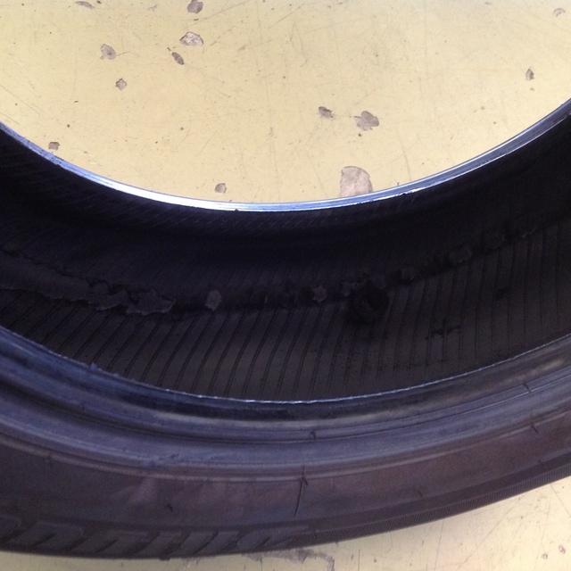 サイドウォール部分一周に損傷跡が……