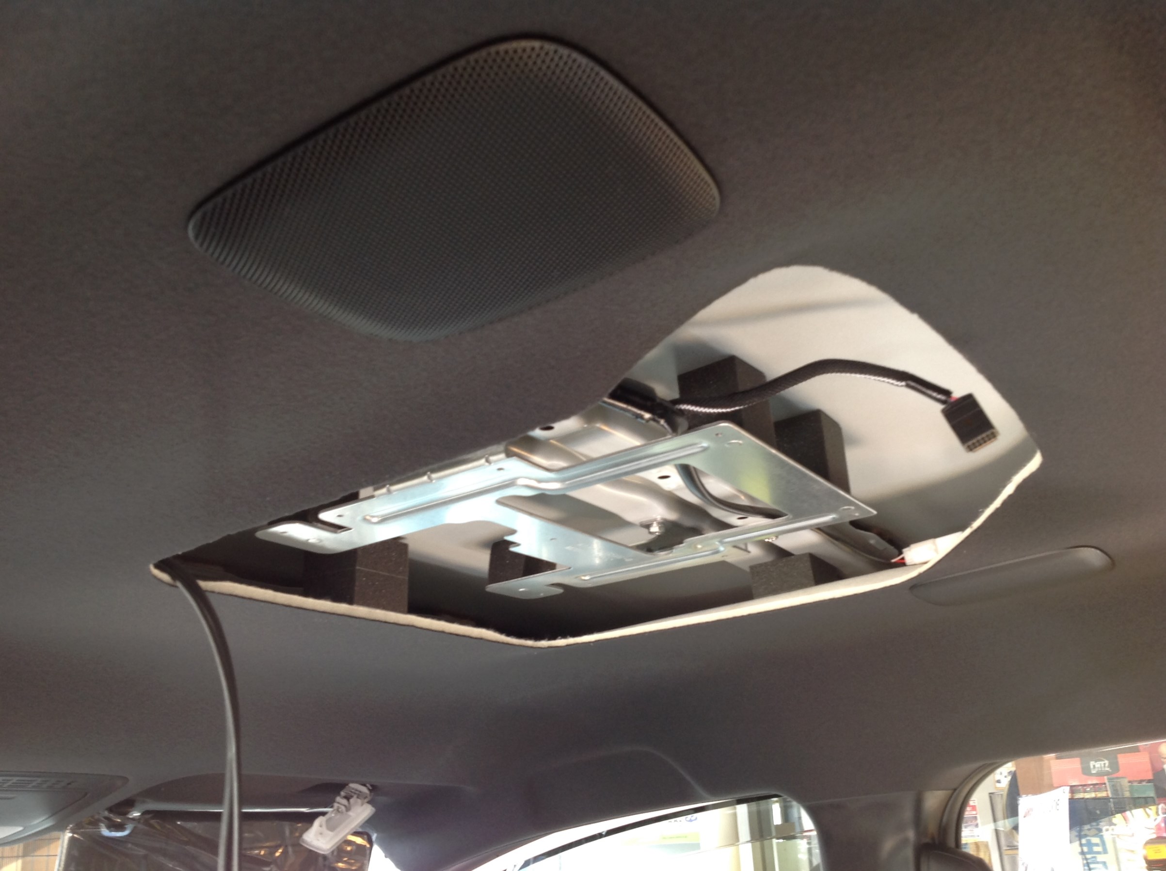 W×Bグレードのブラック内装の天井に、ホワイトマーカーでラインを入れながら丁寧にカットしていきます♪