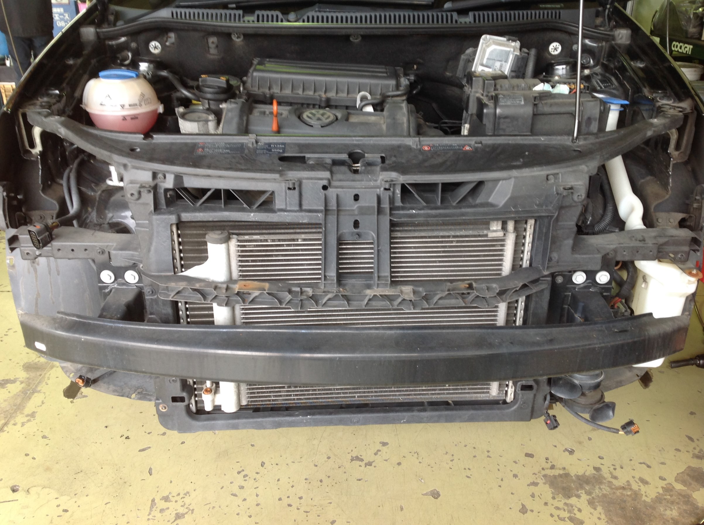 加工が必要なので、ヘッドライトを外すためバンパーまで取り外しちゃいます!
