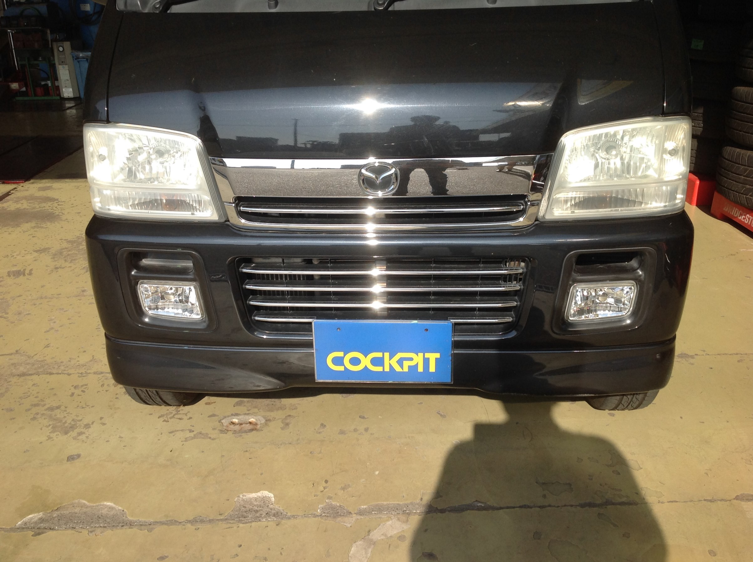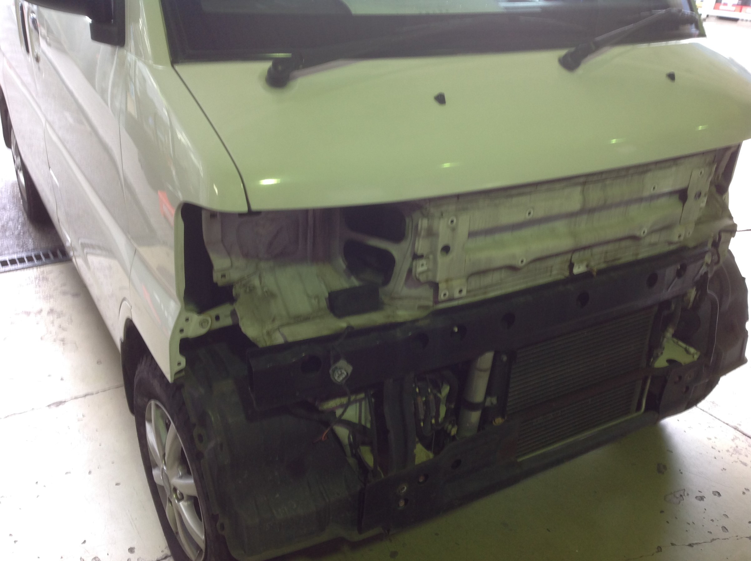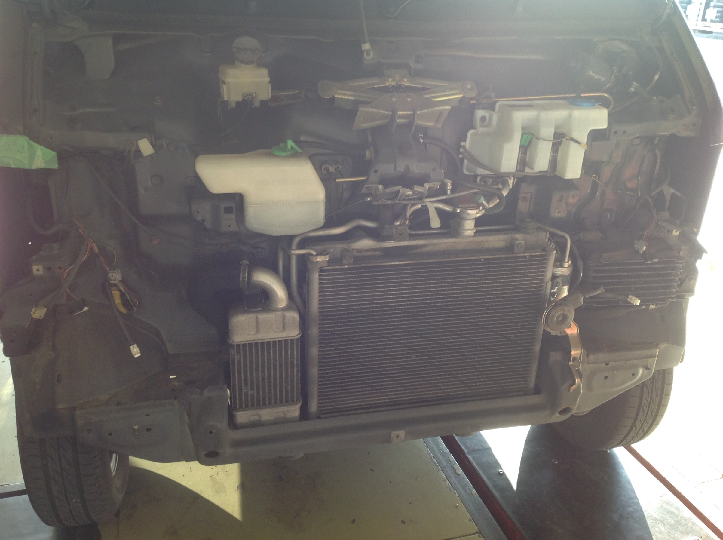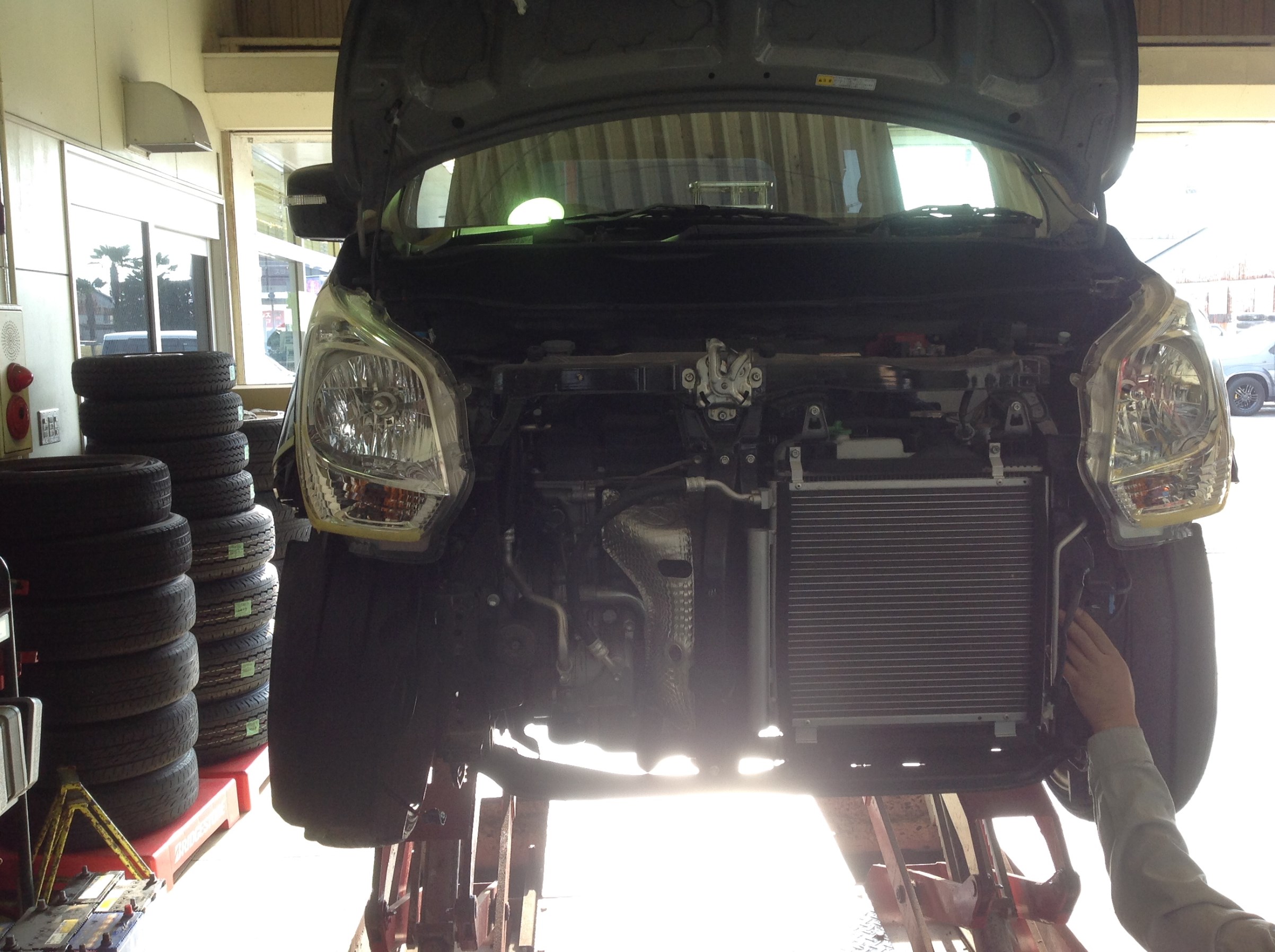 ボンネットの無いコチラのクルマは、グリル&バンパーも外して装着。