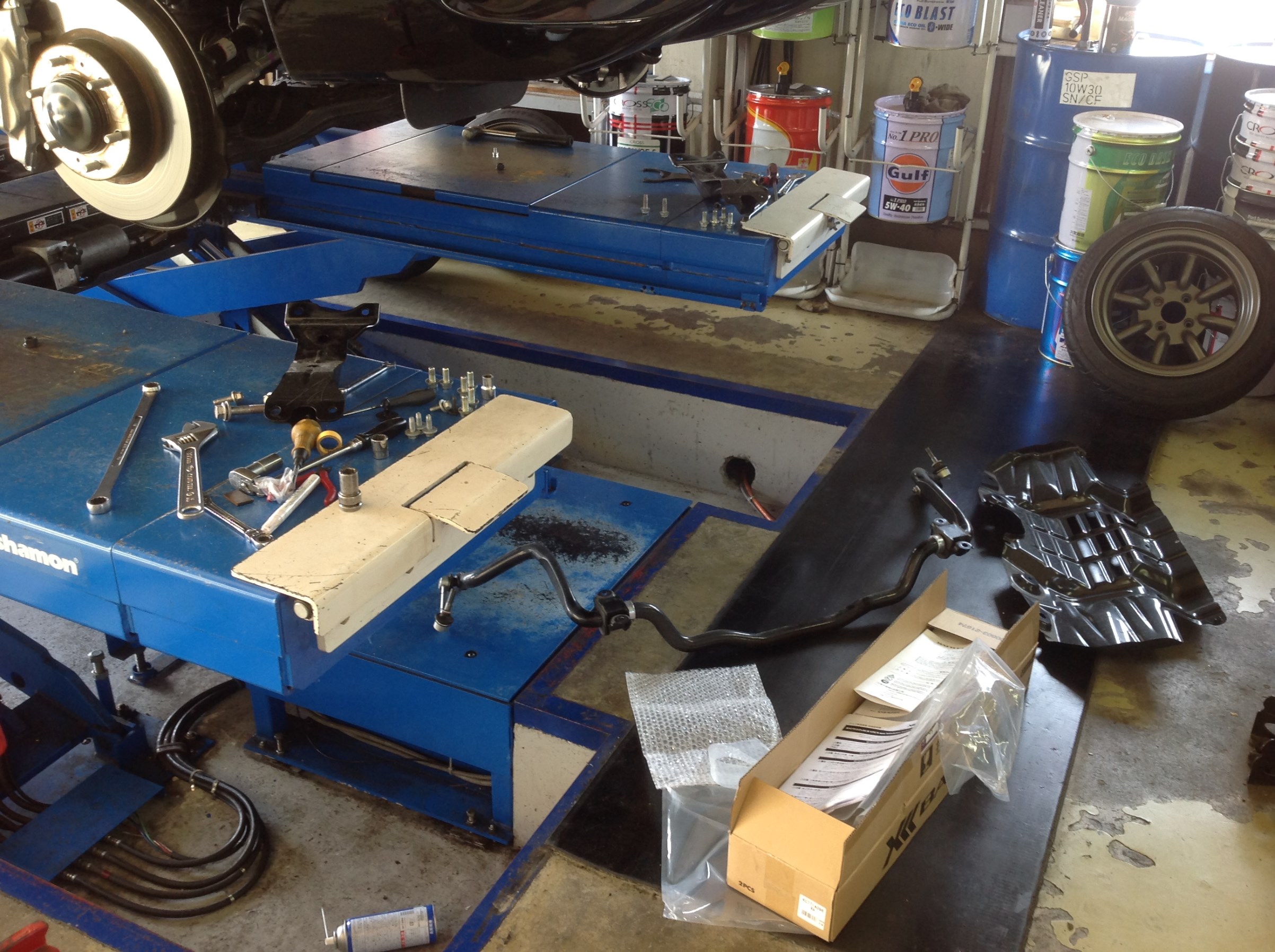 フロントの交換にはスタビライザー等の取り外しも必要で、少々コツが要りますね。