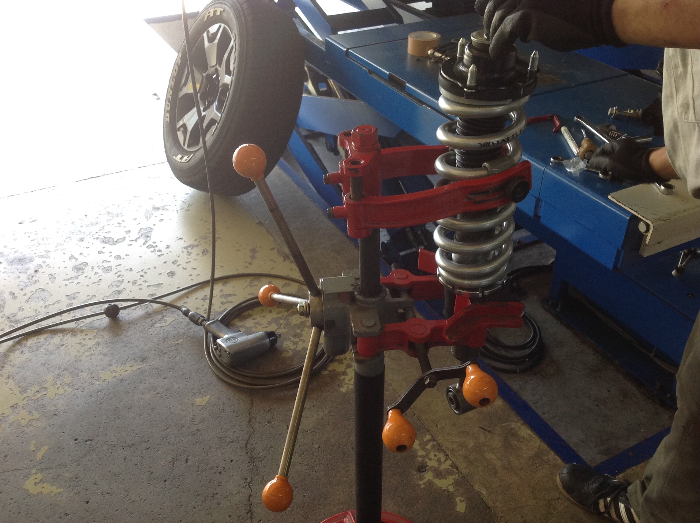 40mm程リフトアップする長ぁ~いバネを、専用工具にて交換♪