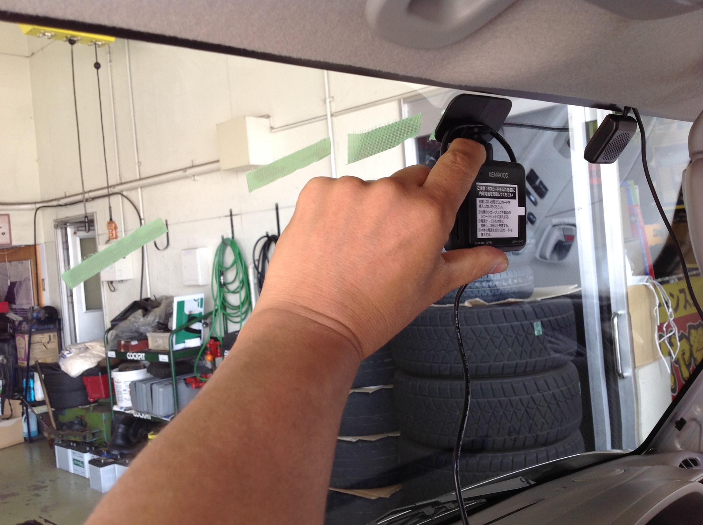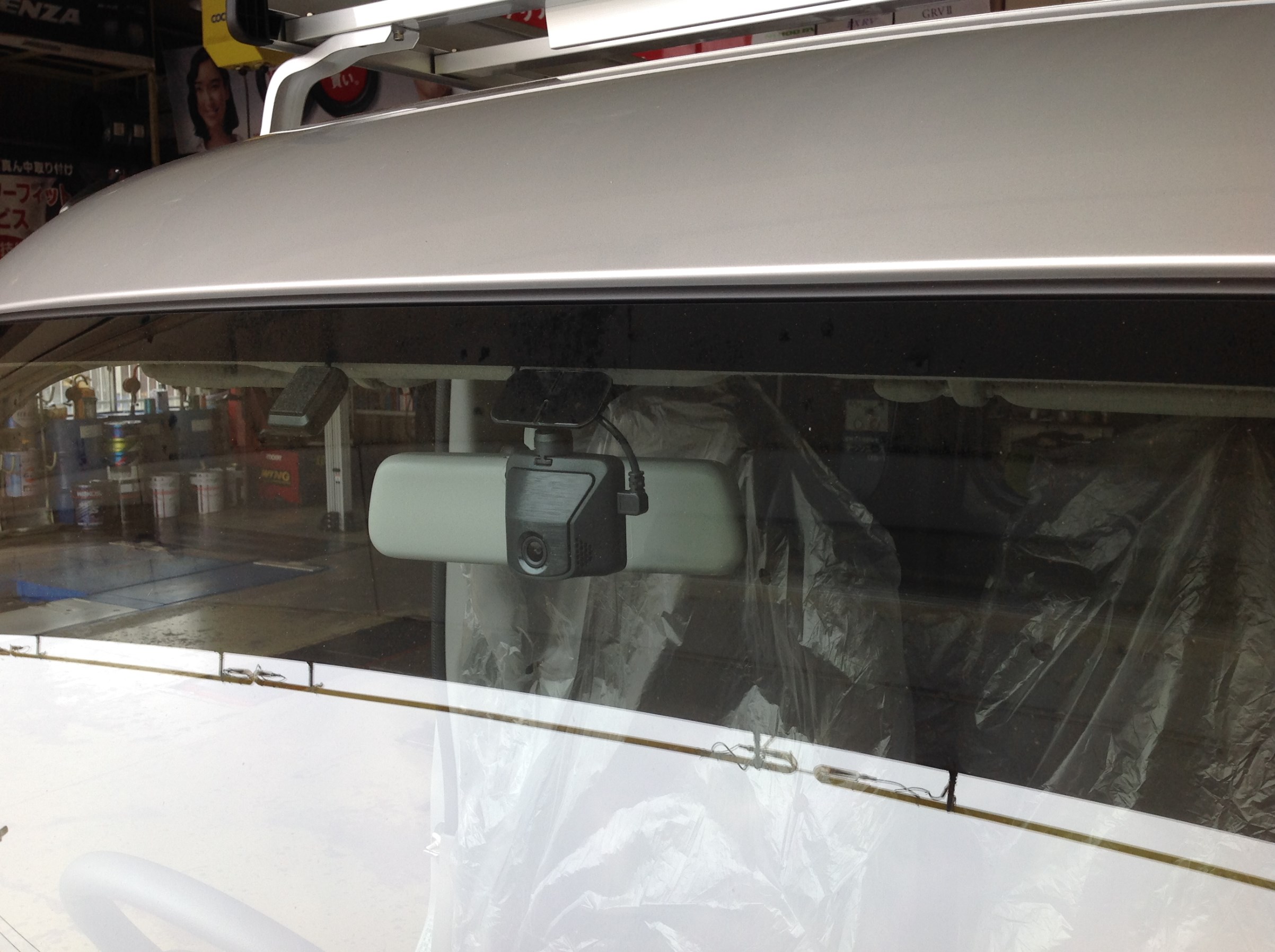 ルームミラー位置や、車検標章シールの位置を考慮し設置完了♪