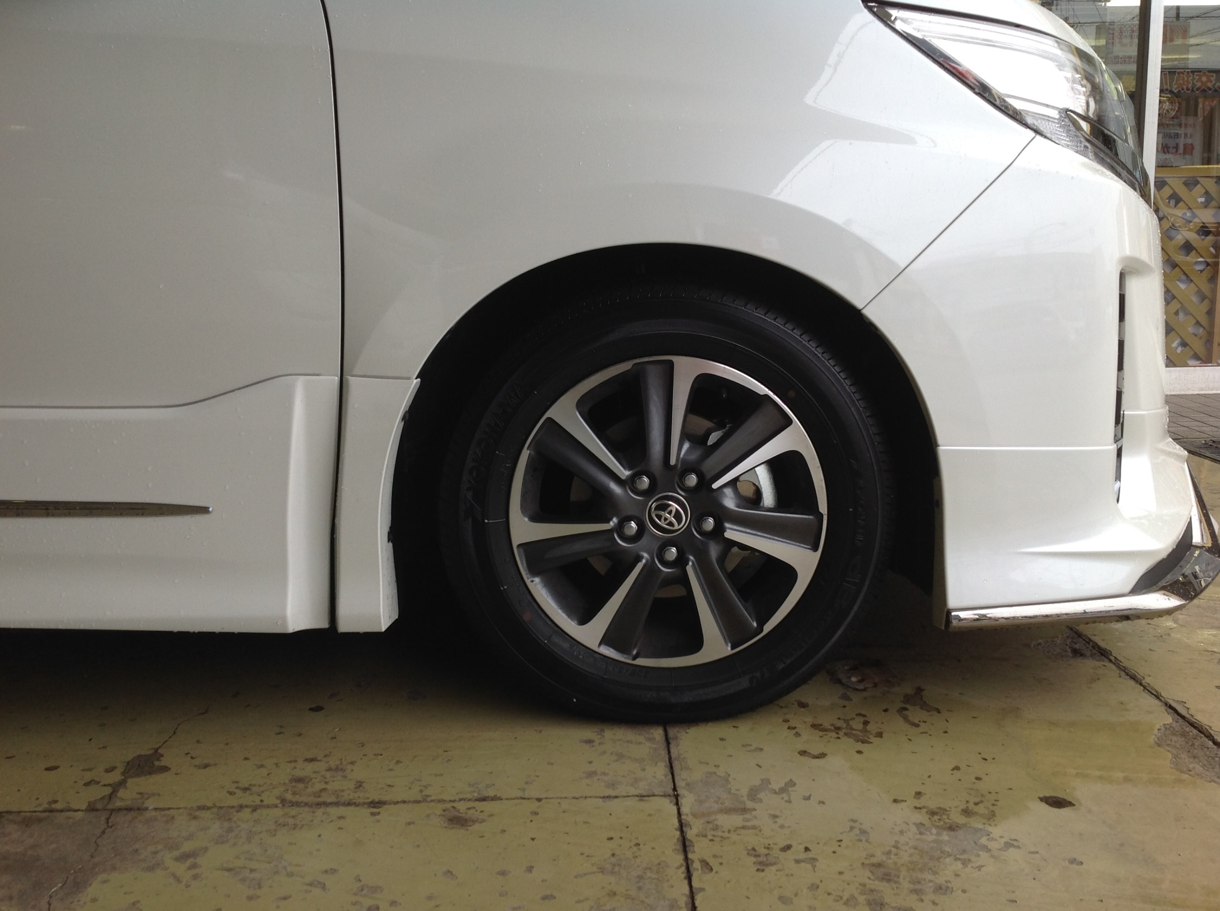 ちょっと腰高な車高を、-35~40mmダウン狙いで作業開始♪