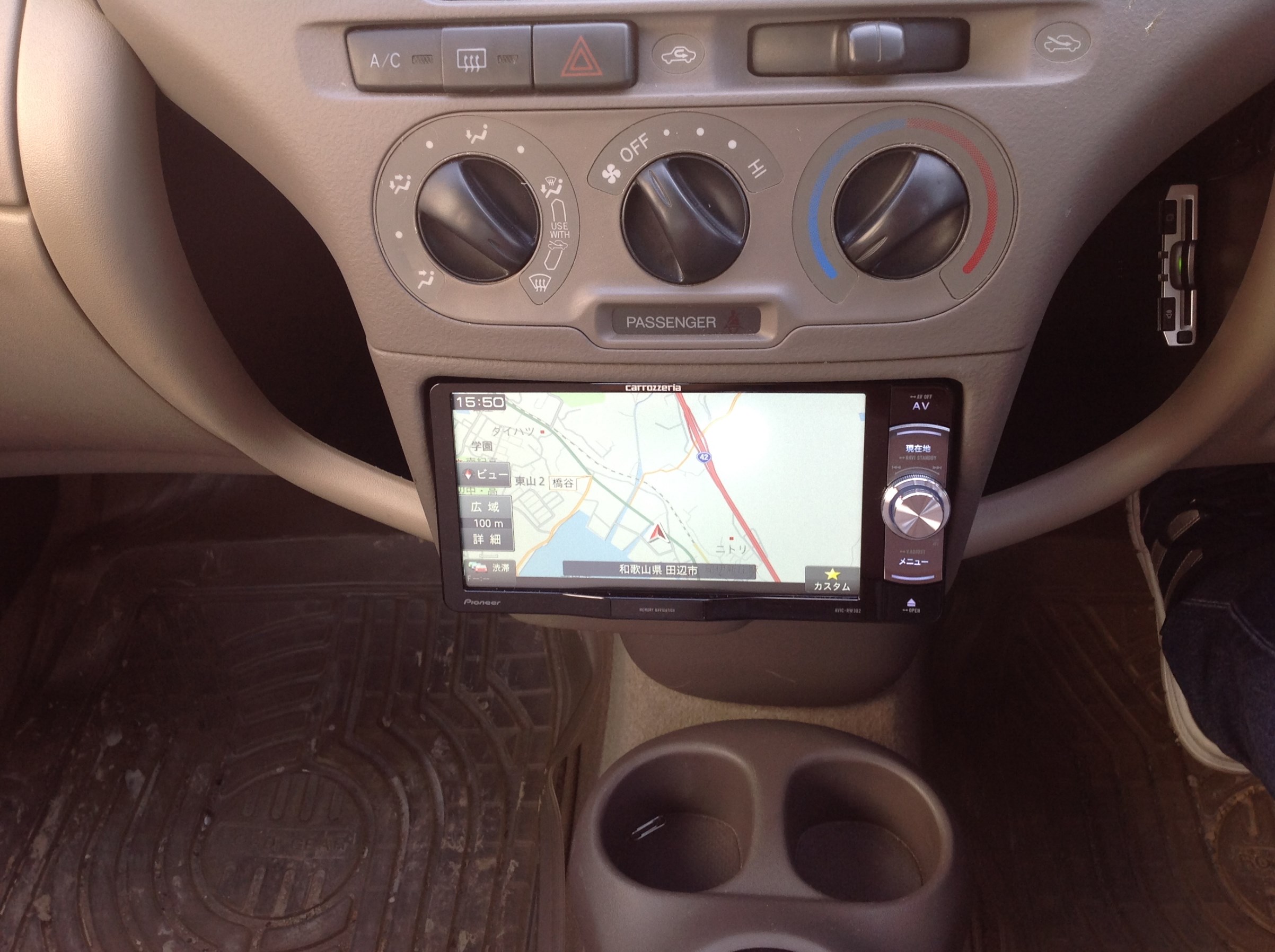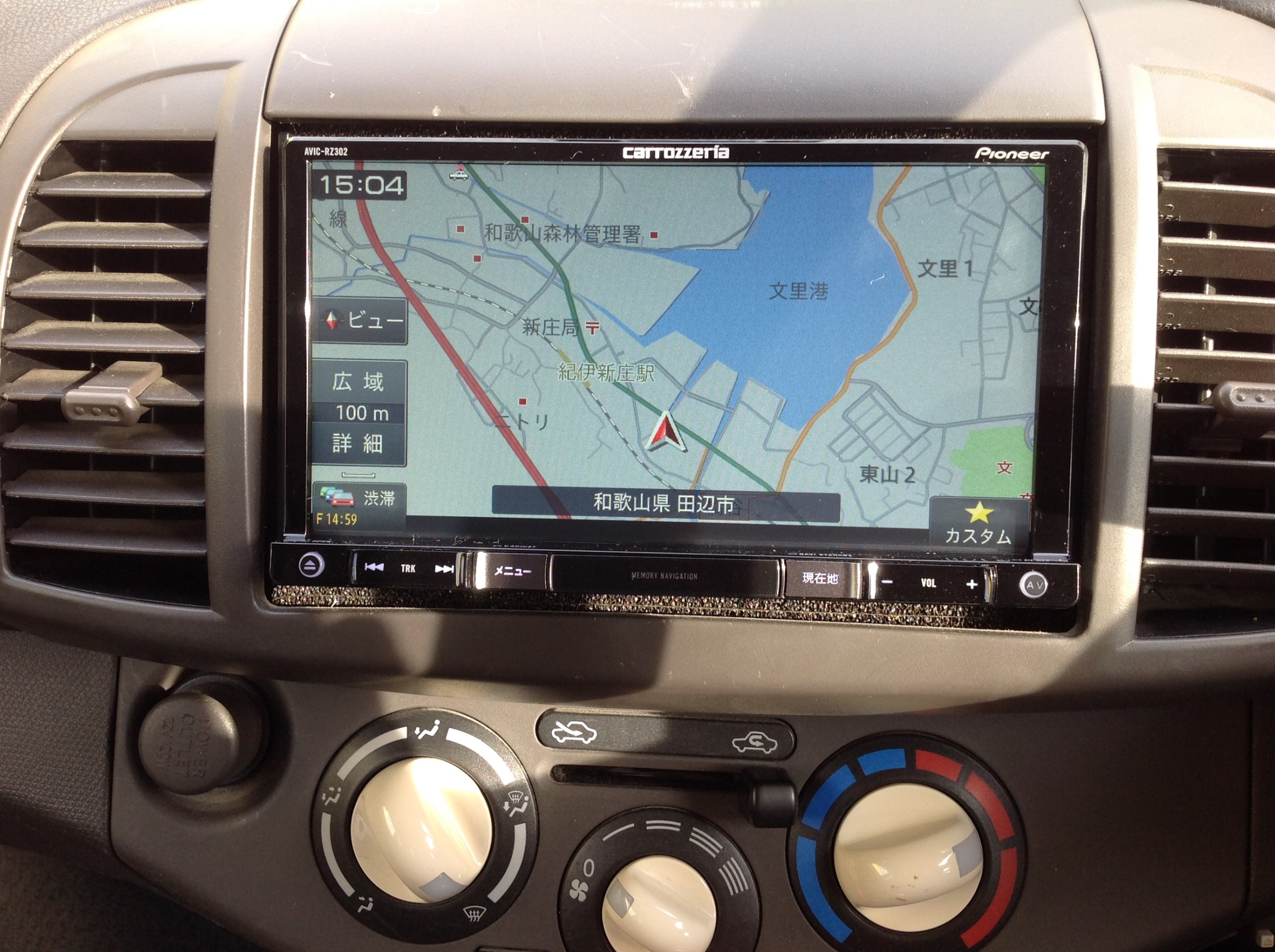 少しナビ位置は下方になりますが、ディスプレイ角度が調整できるので上向きにて設定♪