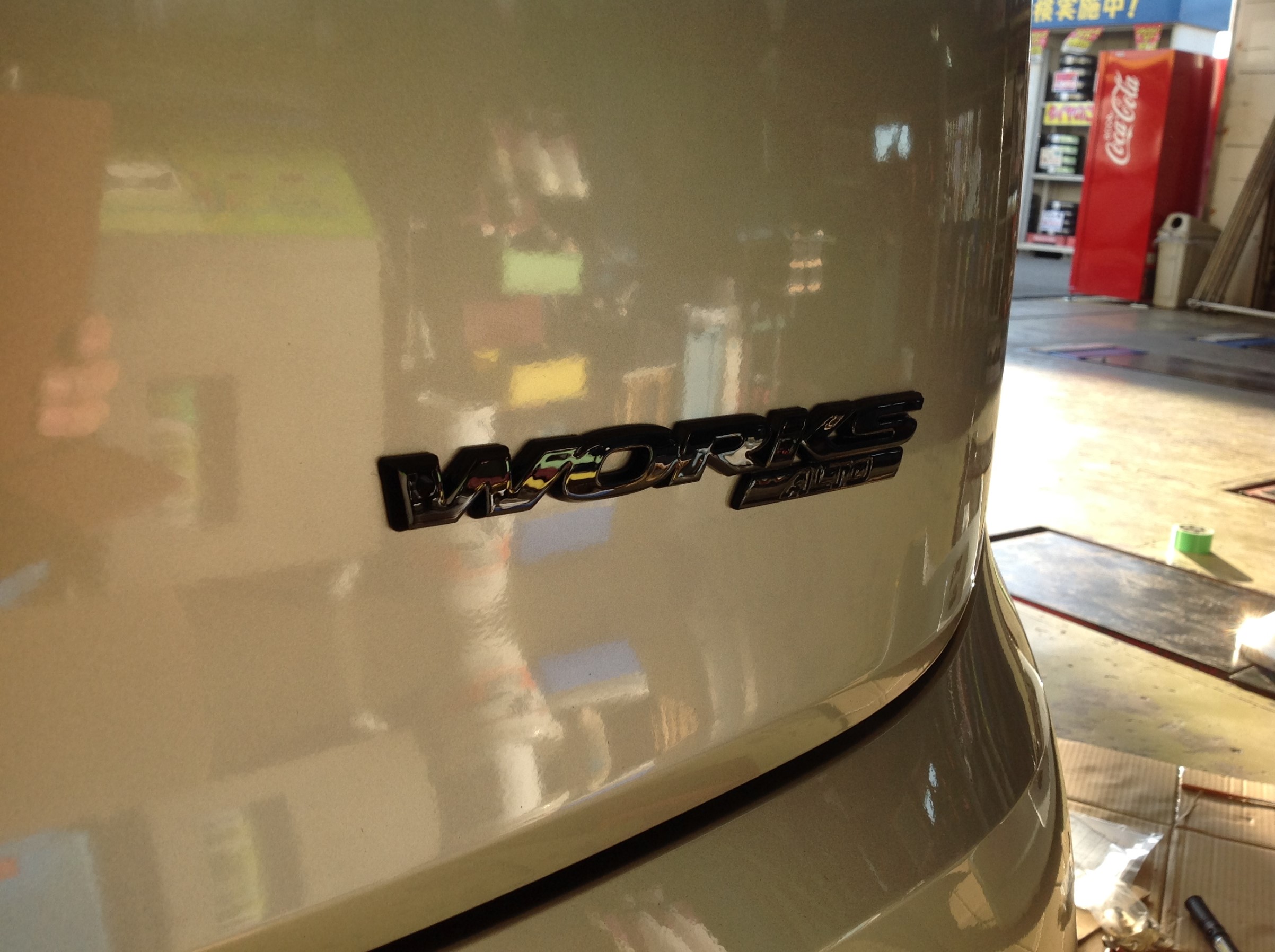 WORKSエンブレムをピアノブラックに♪