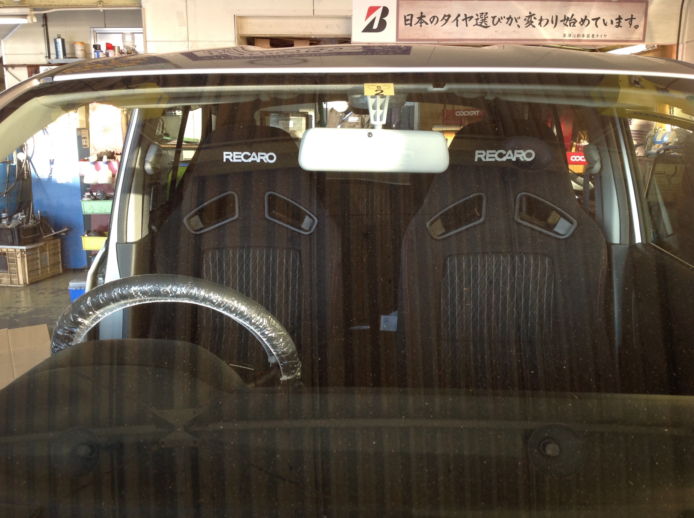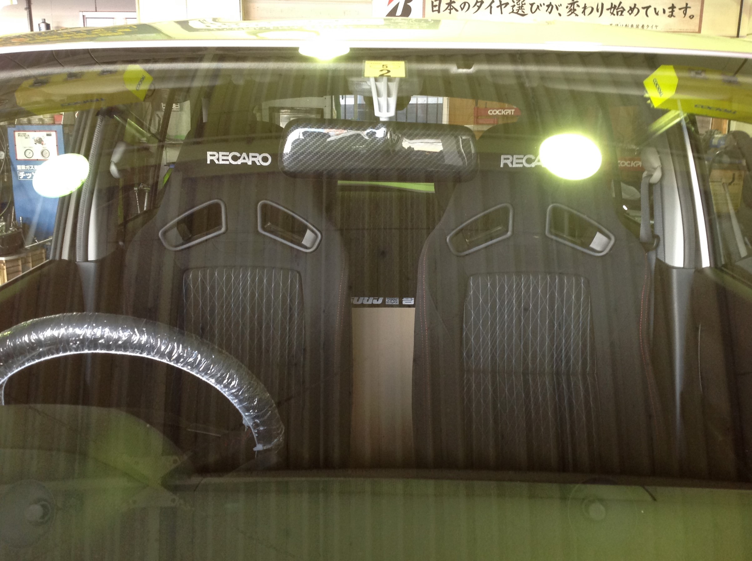 今回はインテリアに移り、まずは白く目立っているルームミラーを
