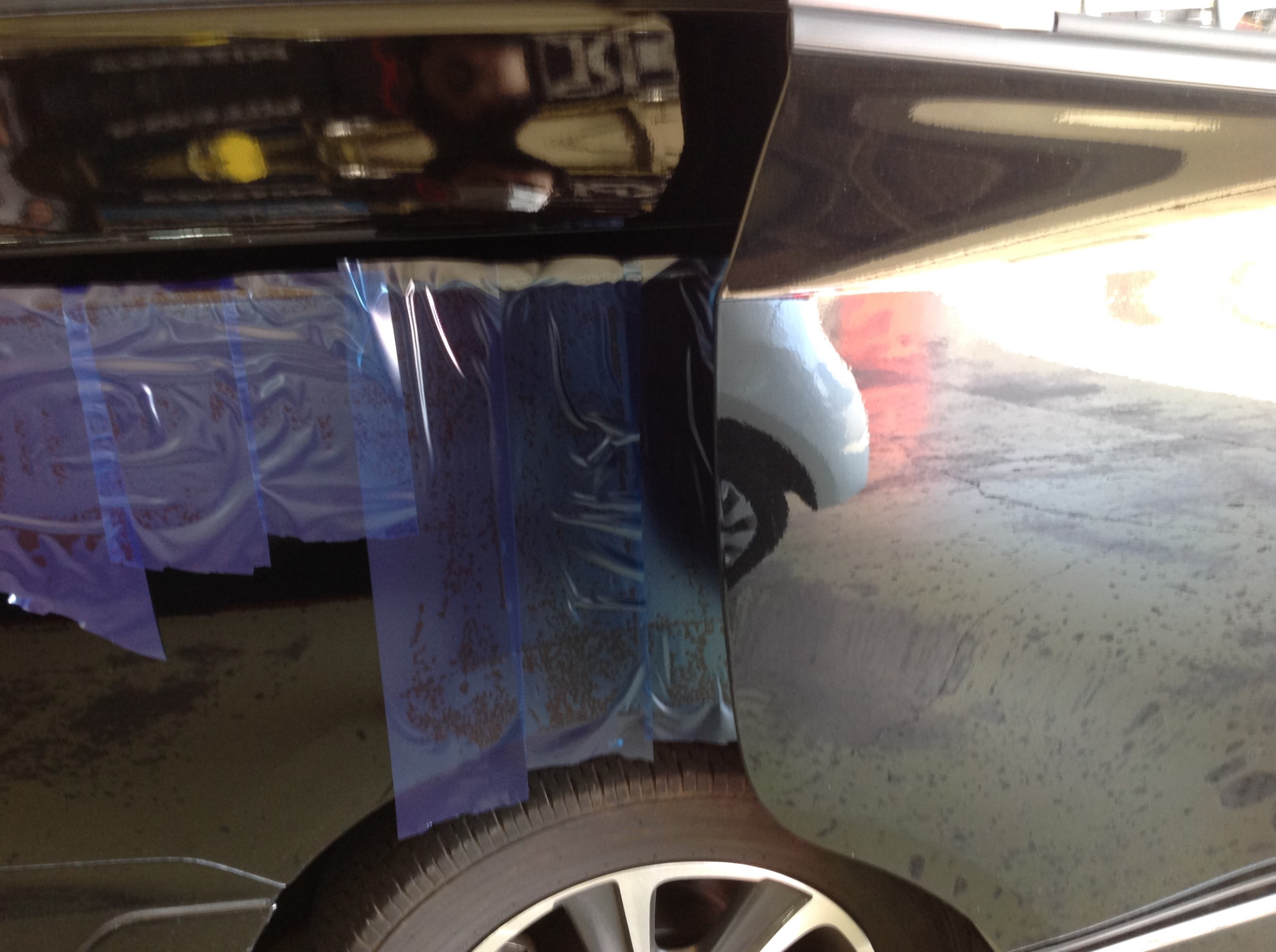 さらにこの状態でドアパネルを分解していくので、ボディ側や内装パネルも養生♪養生♪