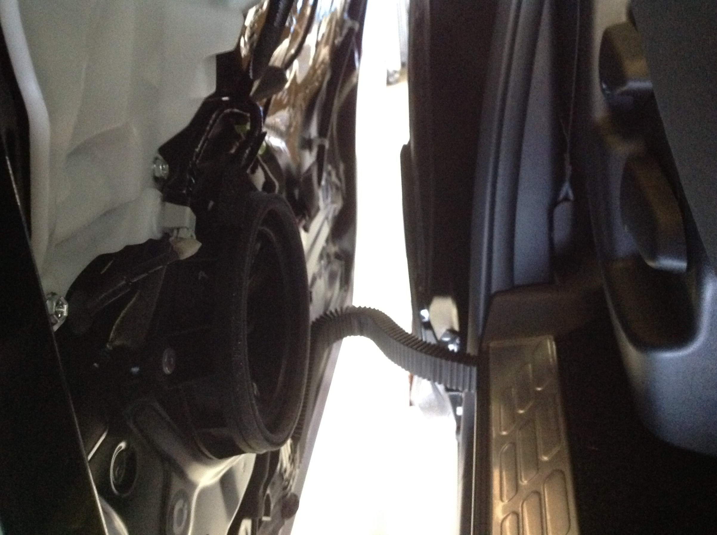 体がスライドドアに挟まれてる状態にて、内張りを分解していきます♪