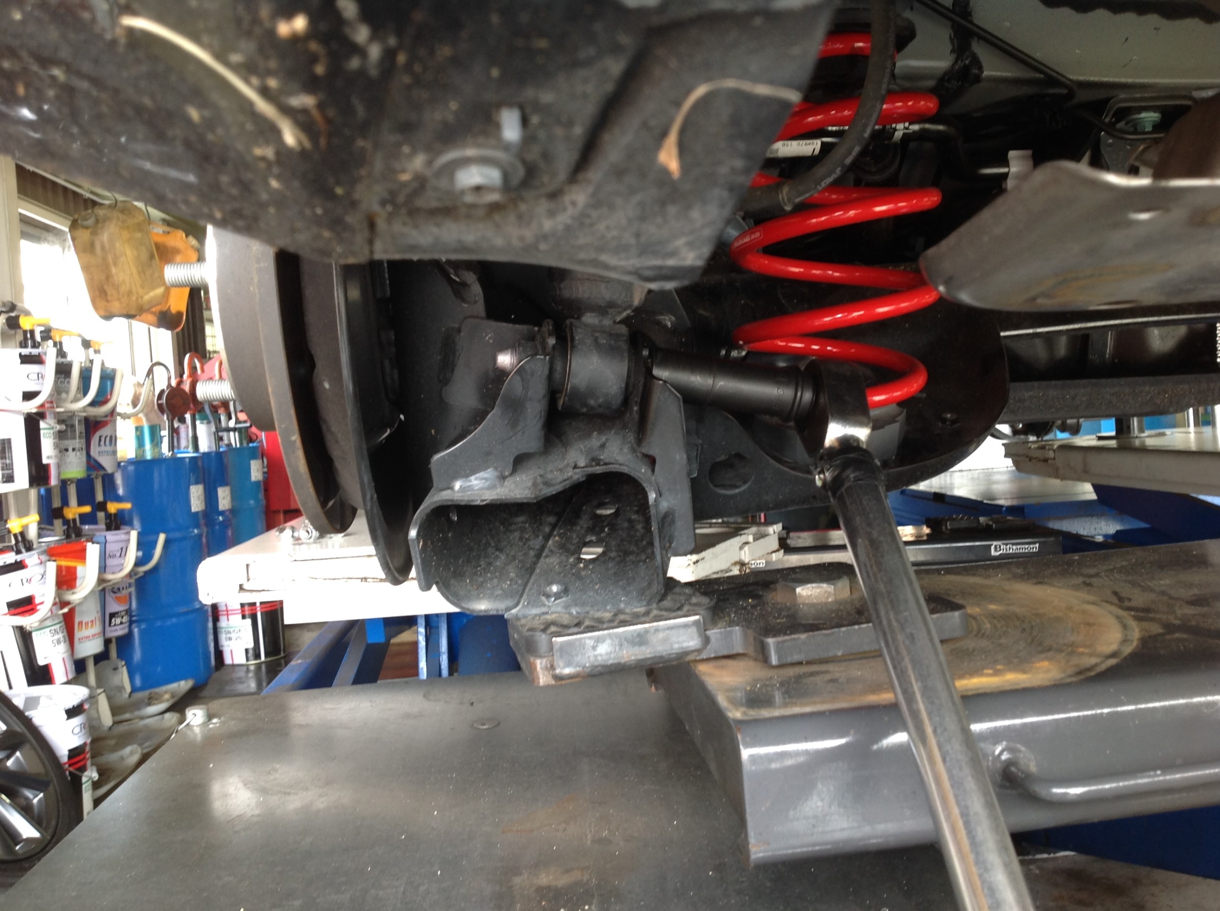 アクスルビーム根元のボルトも開放後ロックします ♪