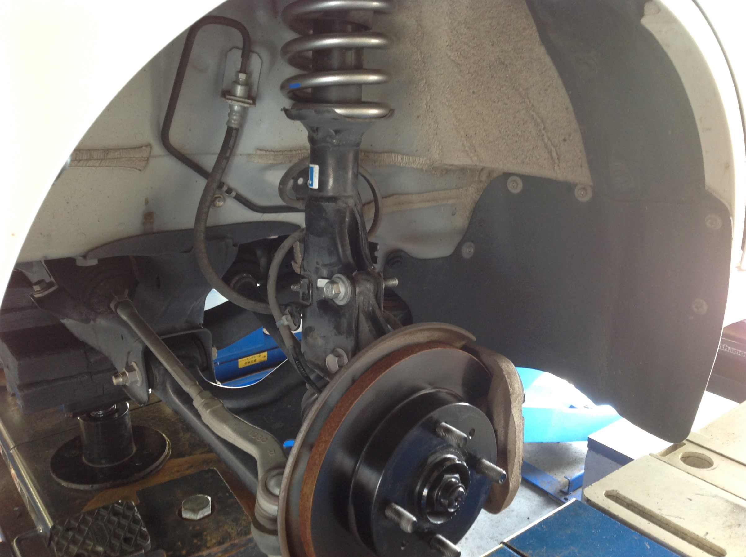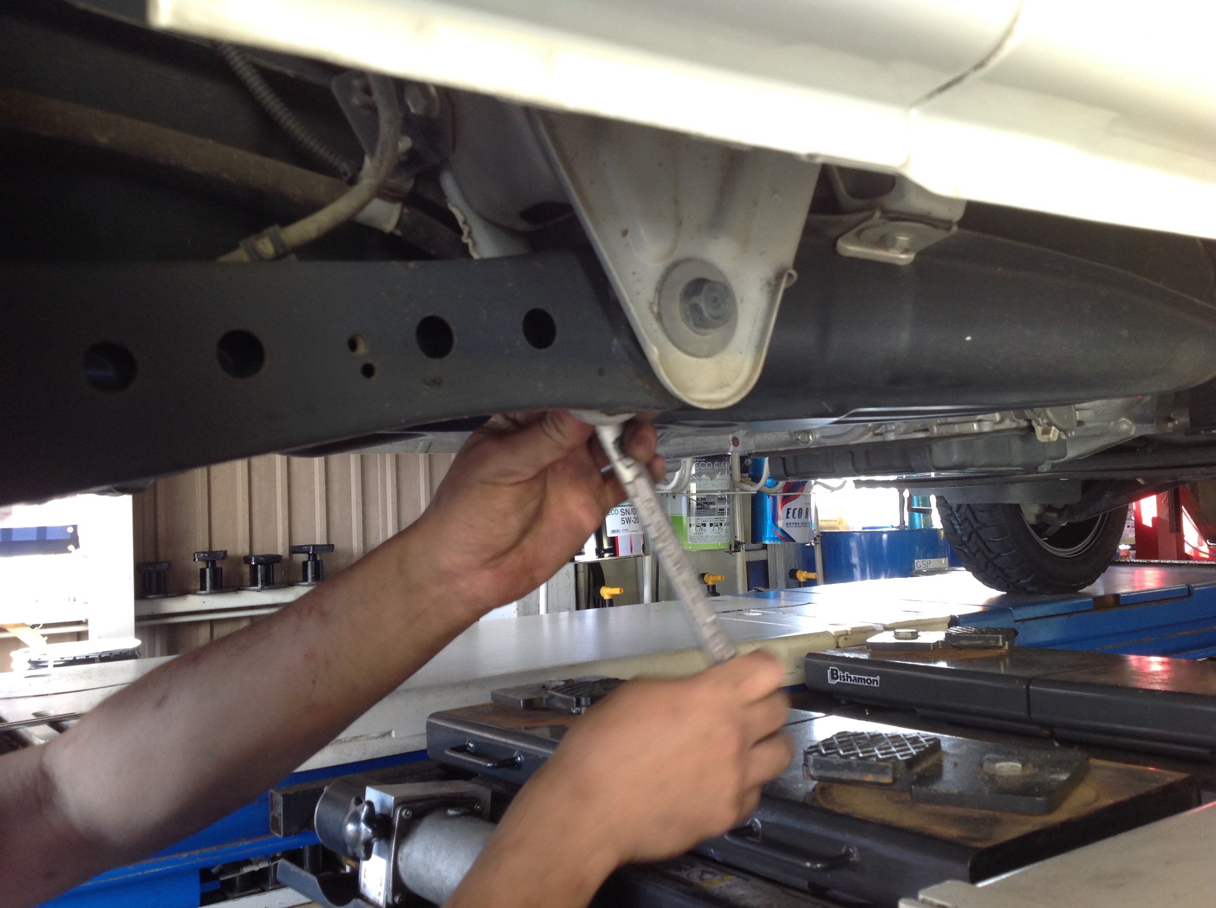 リアアクスルの軸部のボルトを一度開放し、ブッシュの負担を軽減させ1Gにてロック ♪