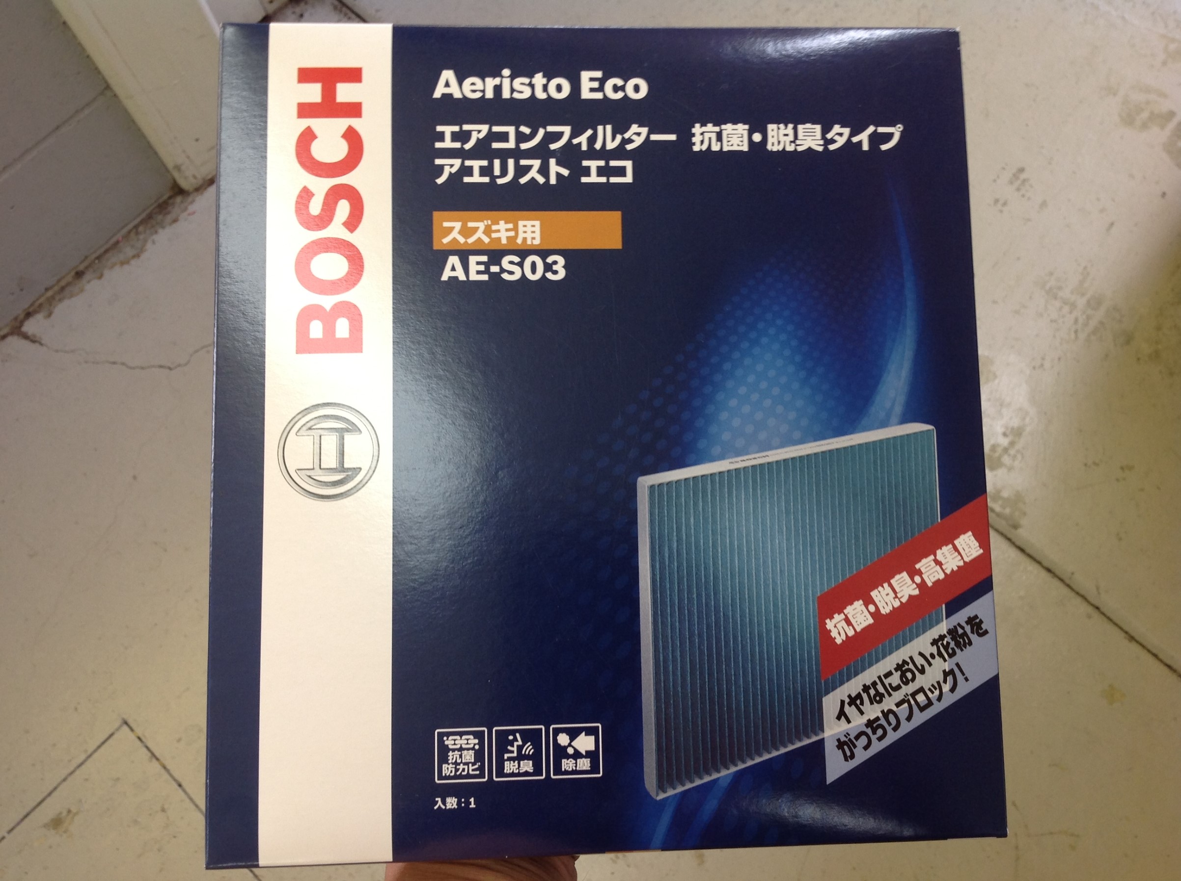 ついでに汚れていたエアコンフィルターも、ボッシュ アエリスト エコに交換していただき