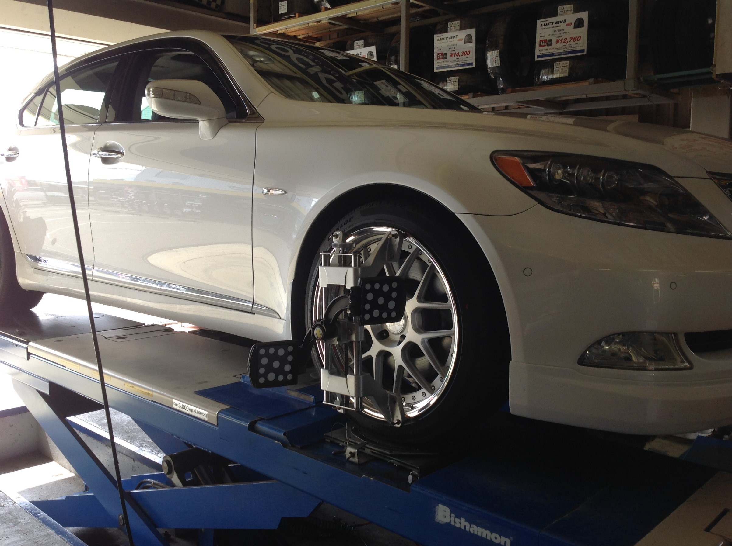 ピットの方ではお客様の紹介で御来店頂きました、LS600hLのアライメント調整 ♪