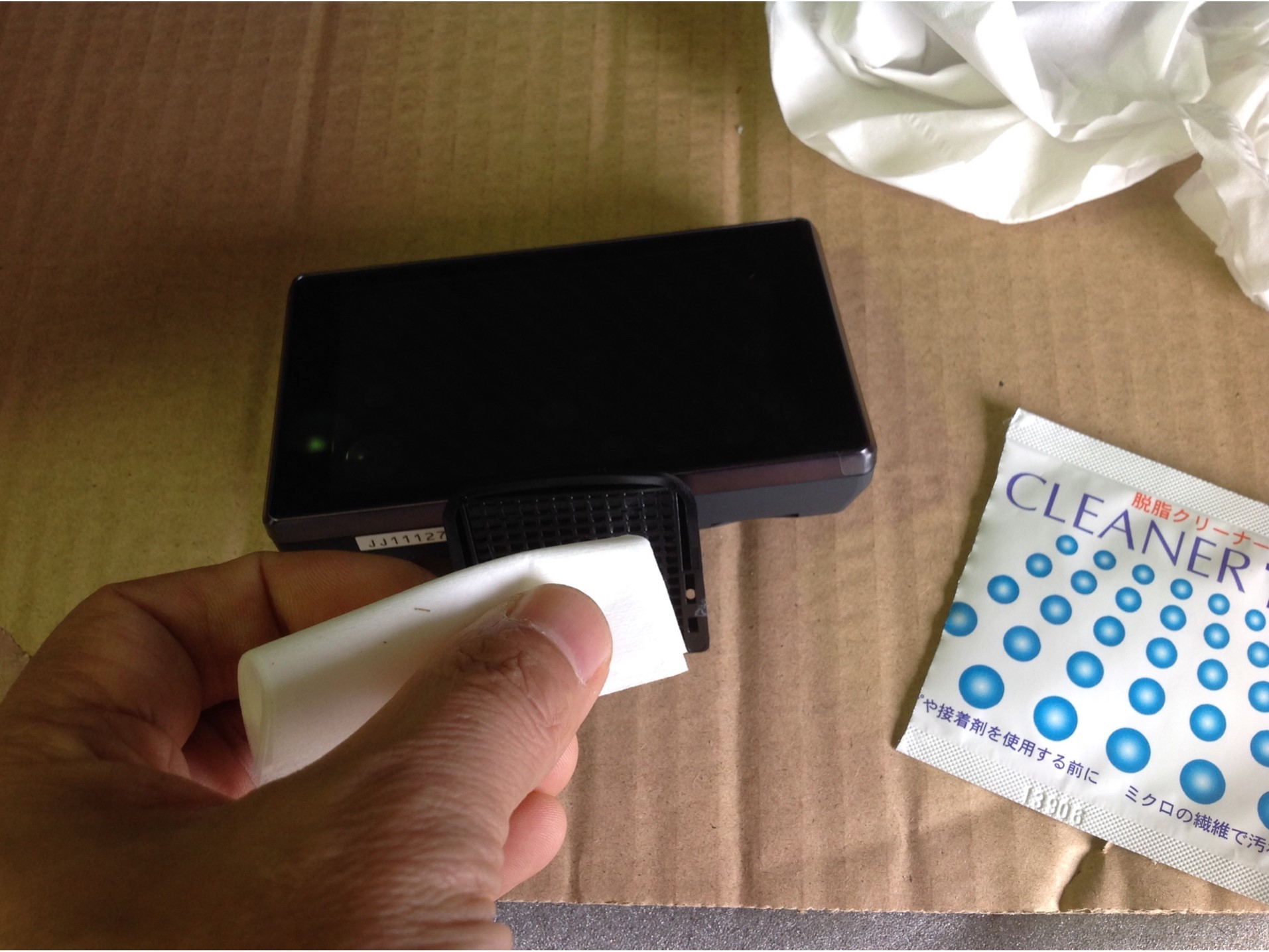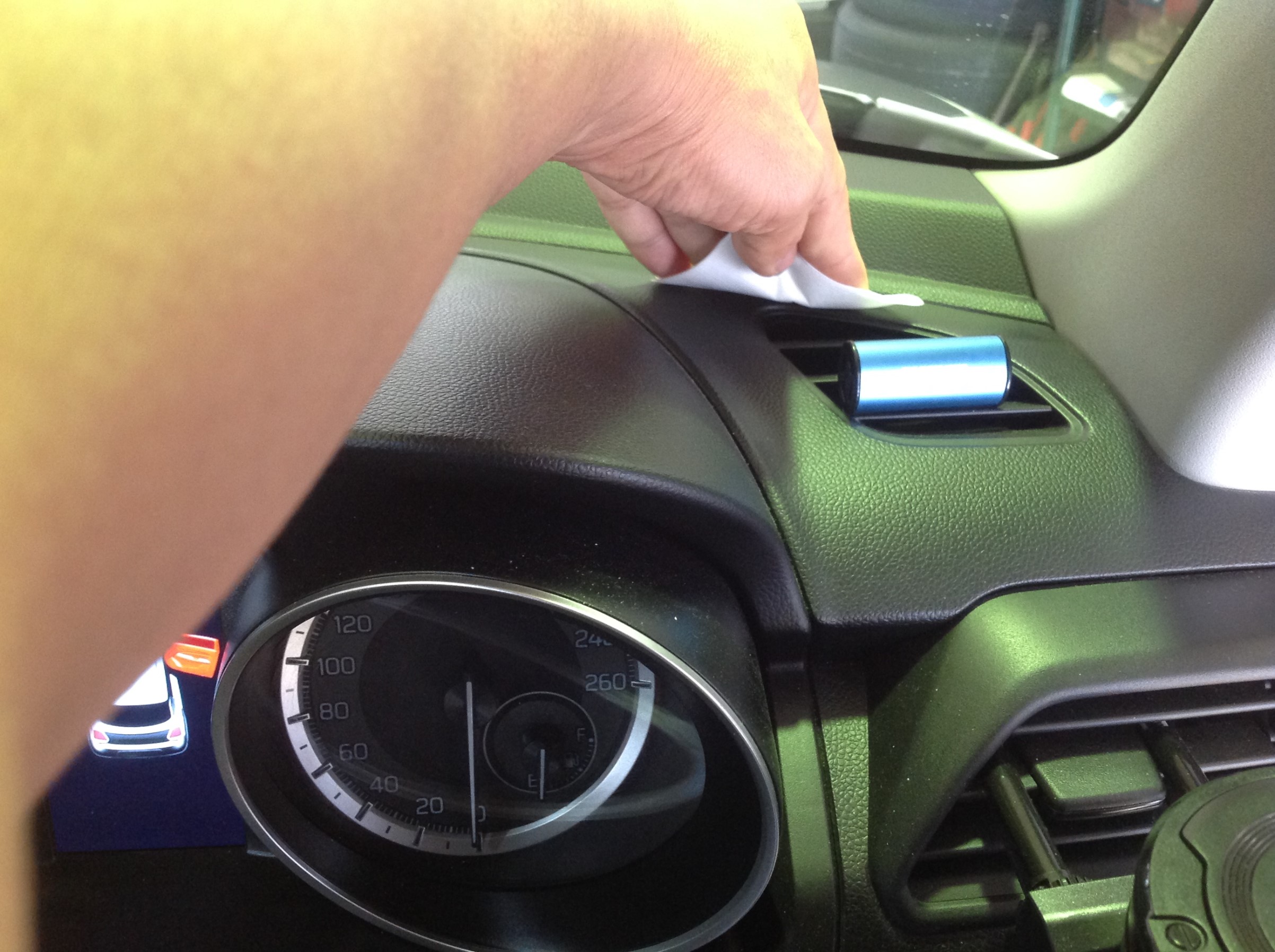 装着前にお客様と装着位置について相談し、まずは装着部の脱脂から ♪