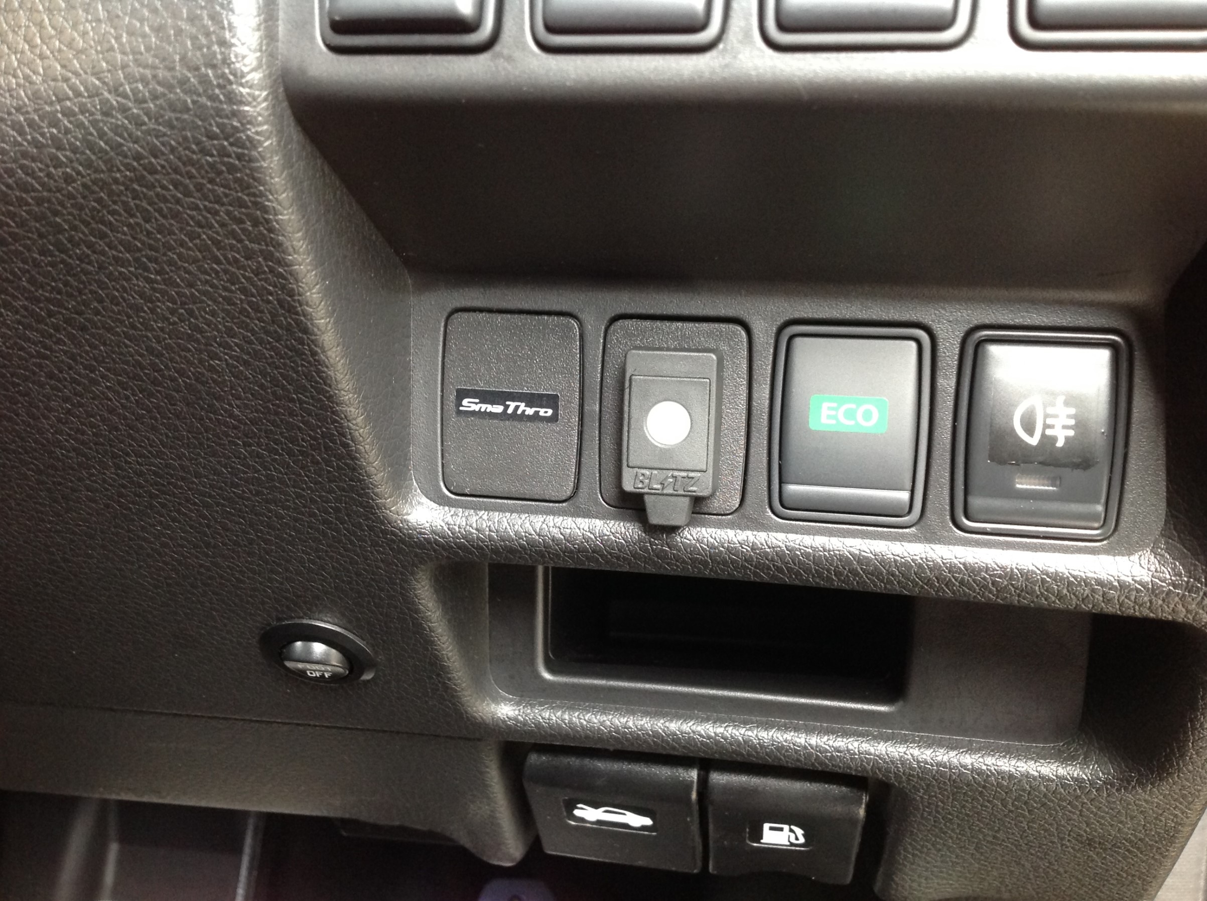先日バックフォグ装着時に増設した、フォグスイッチ横の空きパネルに、操作スイッチを