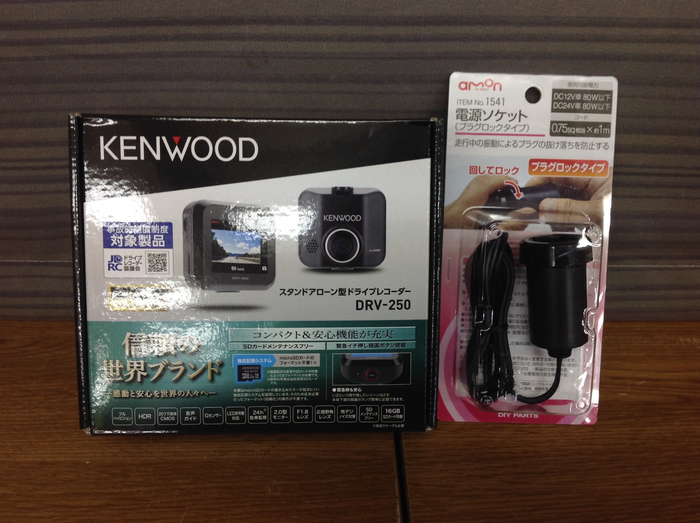 まずは人気のフロントドラレコ ♪ ケンウッドさんのDRV-250と電源裏取りの必需品 ♪