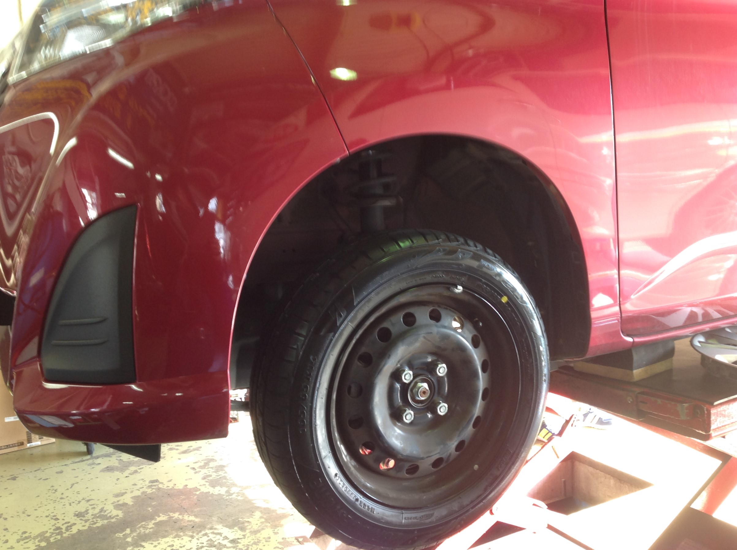 スペアタイヤの劣化が激しかったので、4本交換の内の1本をスペアタイヤ用に組替 ♪