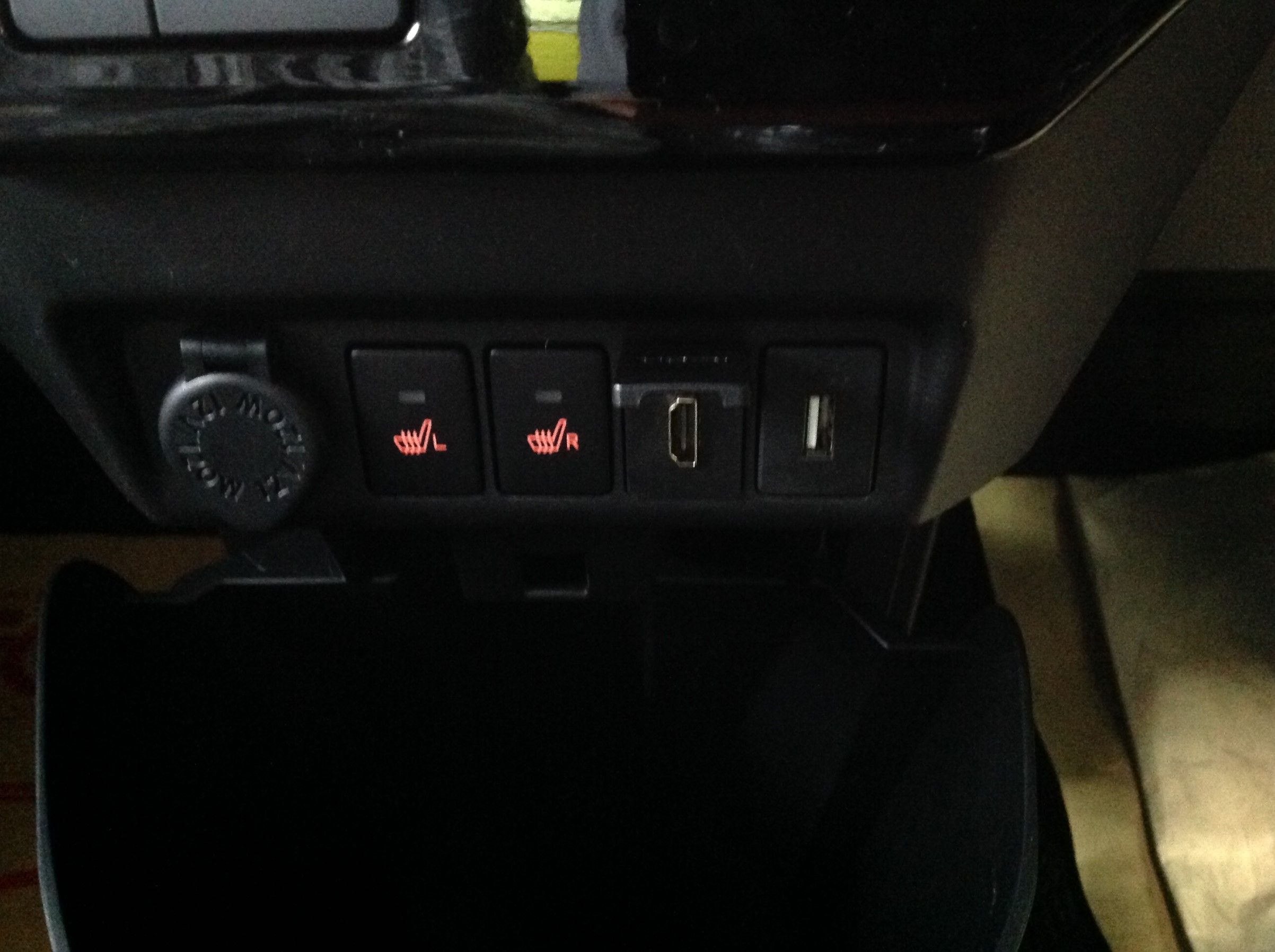 シートヒータースイッチ横には、HDMIとUSBの入力ポートも設置 ♪