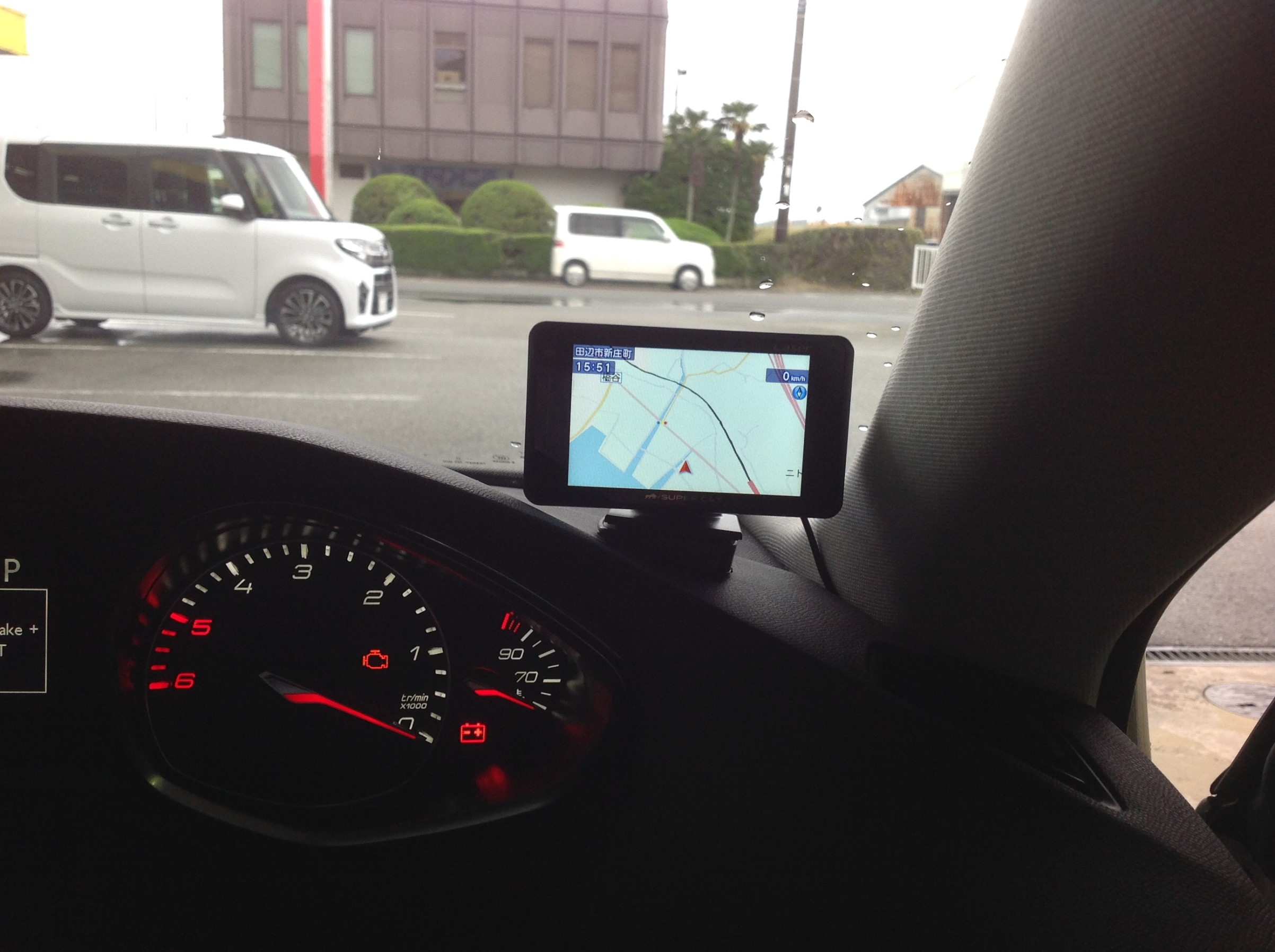 電源はシガーロックアダプターを使い、裏取りにて収納 ♪