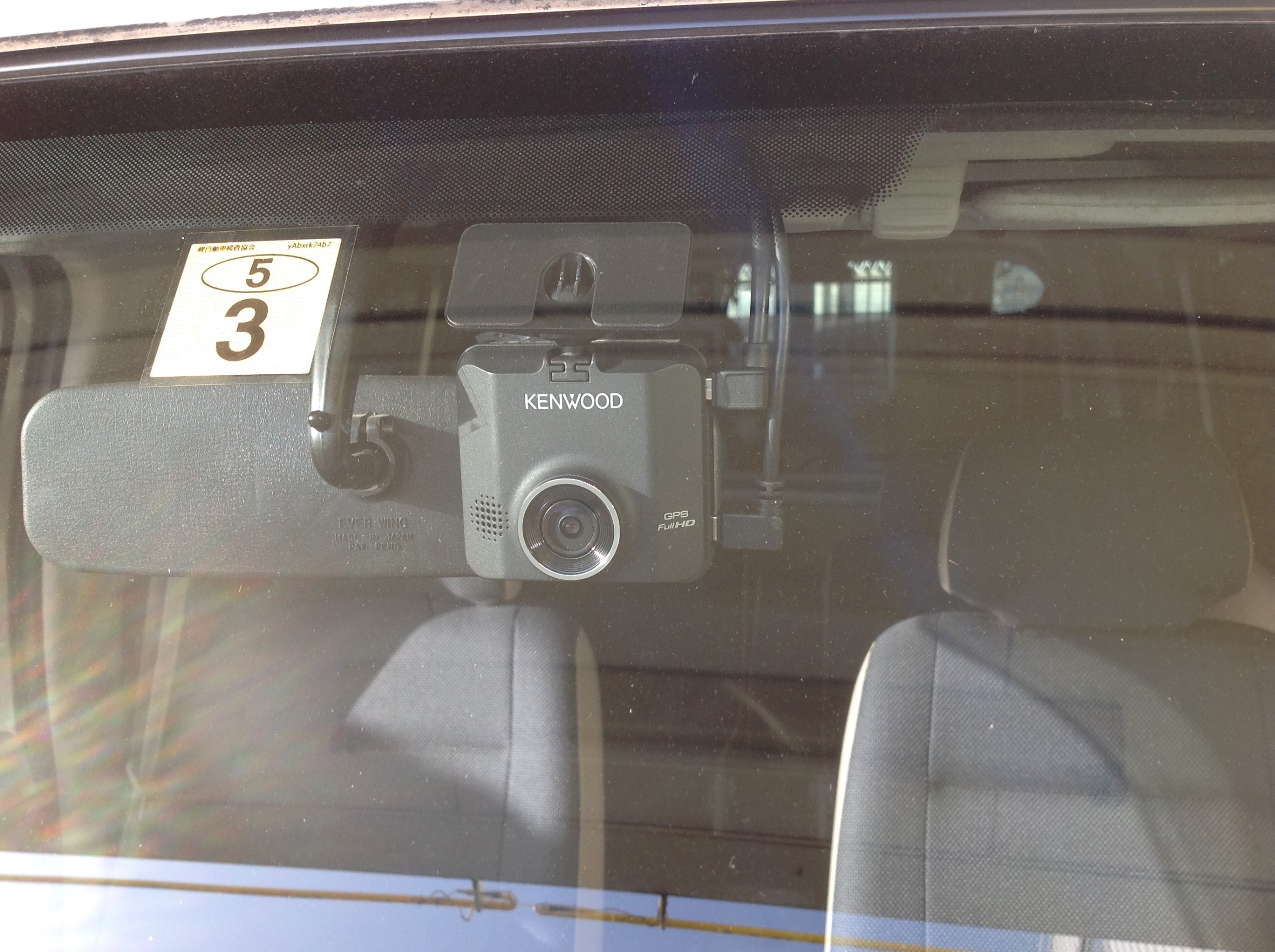 フロント本体は、ルームミラー裏にワイパーふき取り位置を考慮しながら装着し完成 ♪