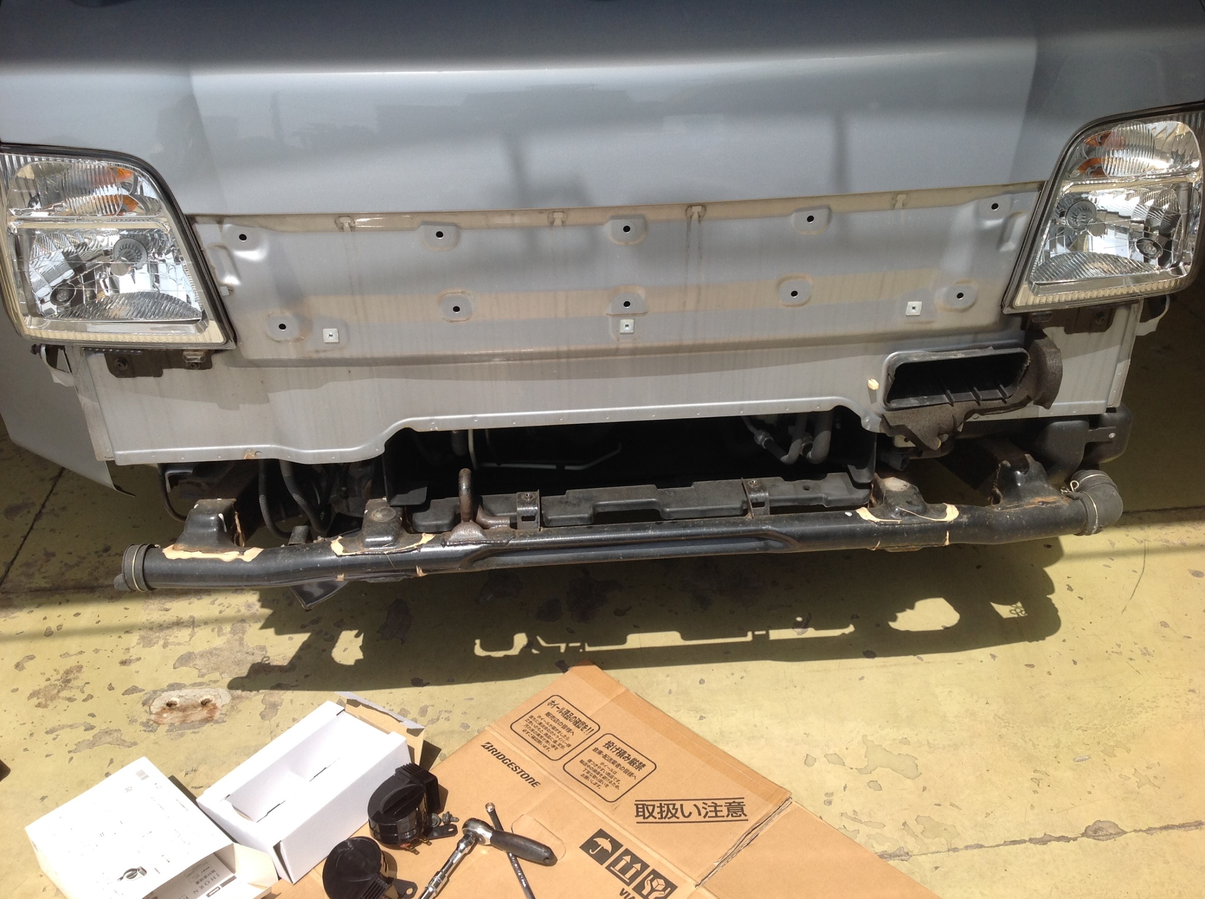 お次はホーンの装着で、グリル&バンパーを取り外して装着スペースを確認していきます!