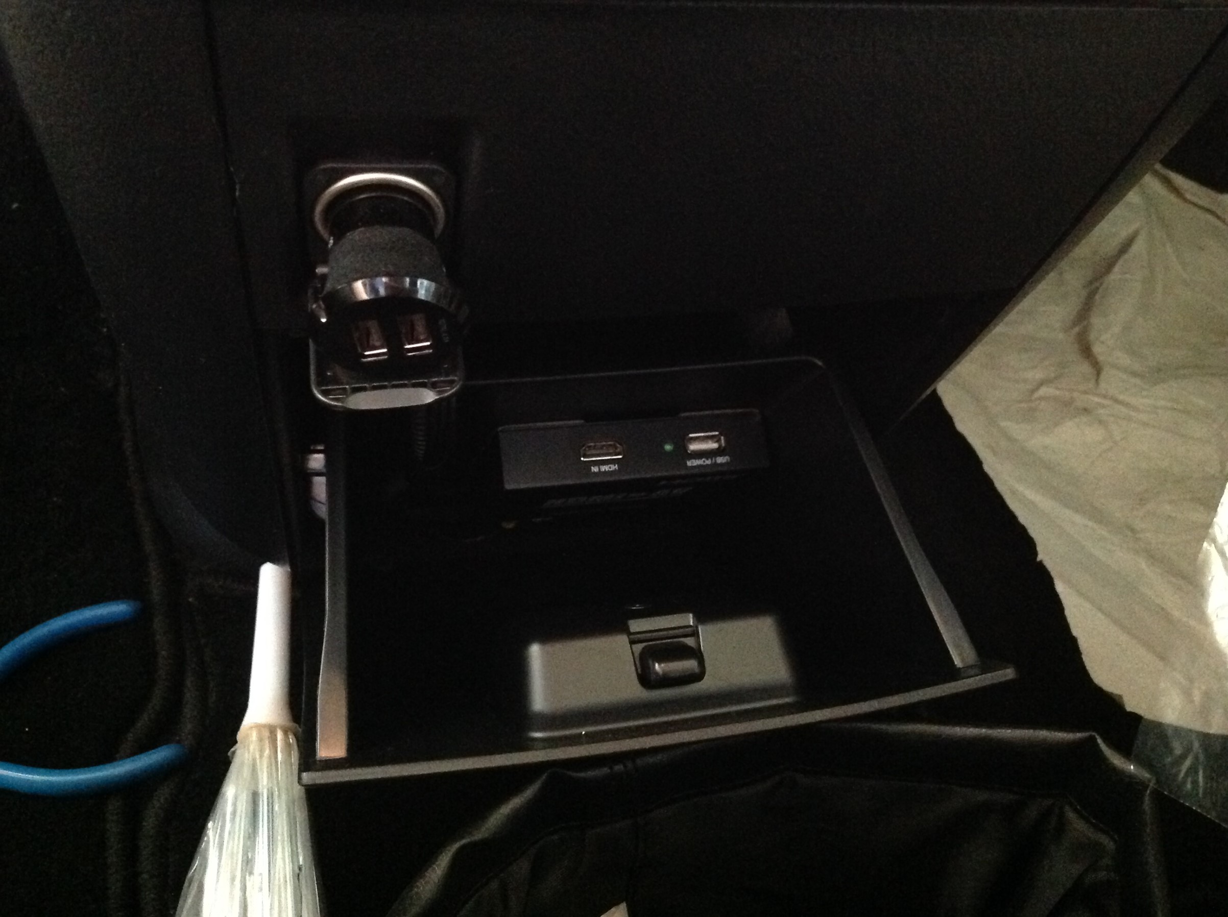 そしてHDMI/アナログ変換アダプターをセンターコンソール内に設置させて頂きまして、