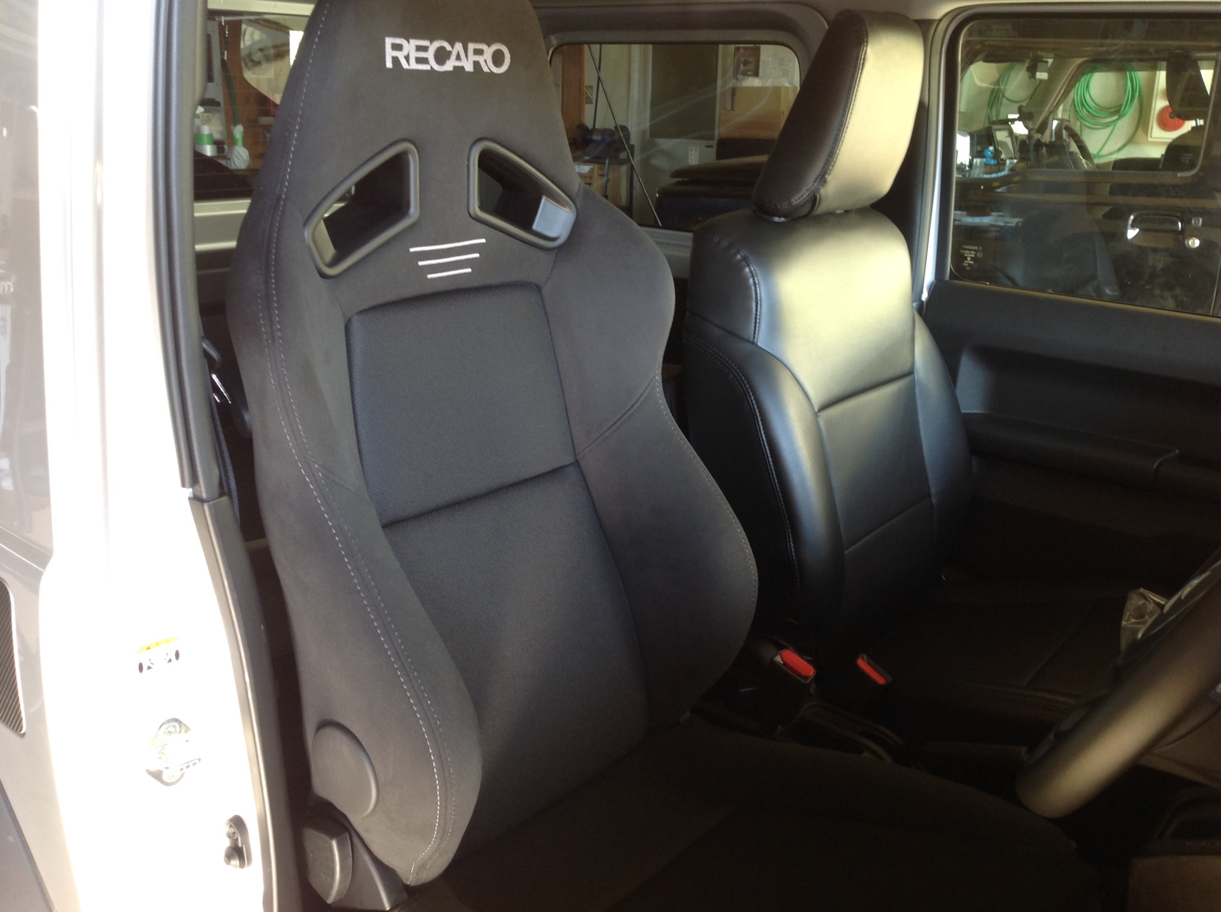 エアバッグのキャンセラーも割り込ませ、いよいよレカロを室内に ♪