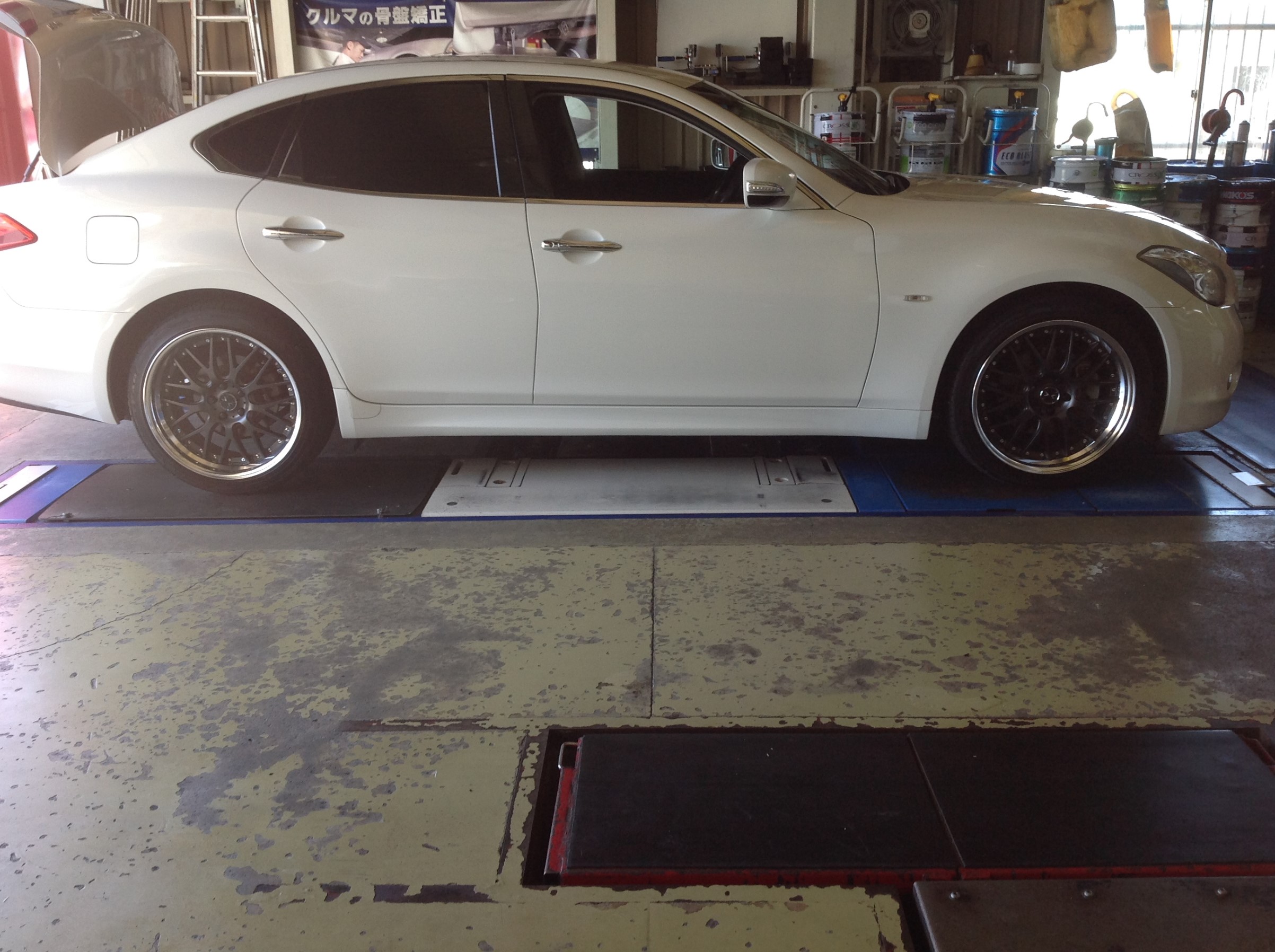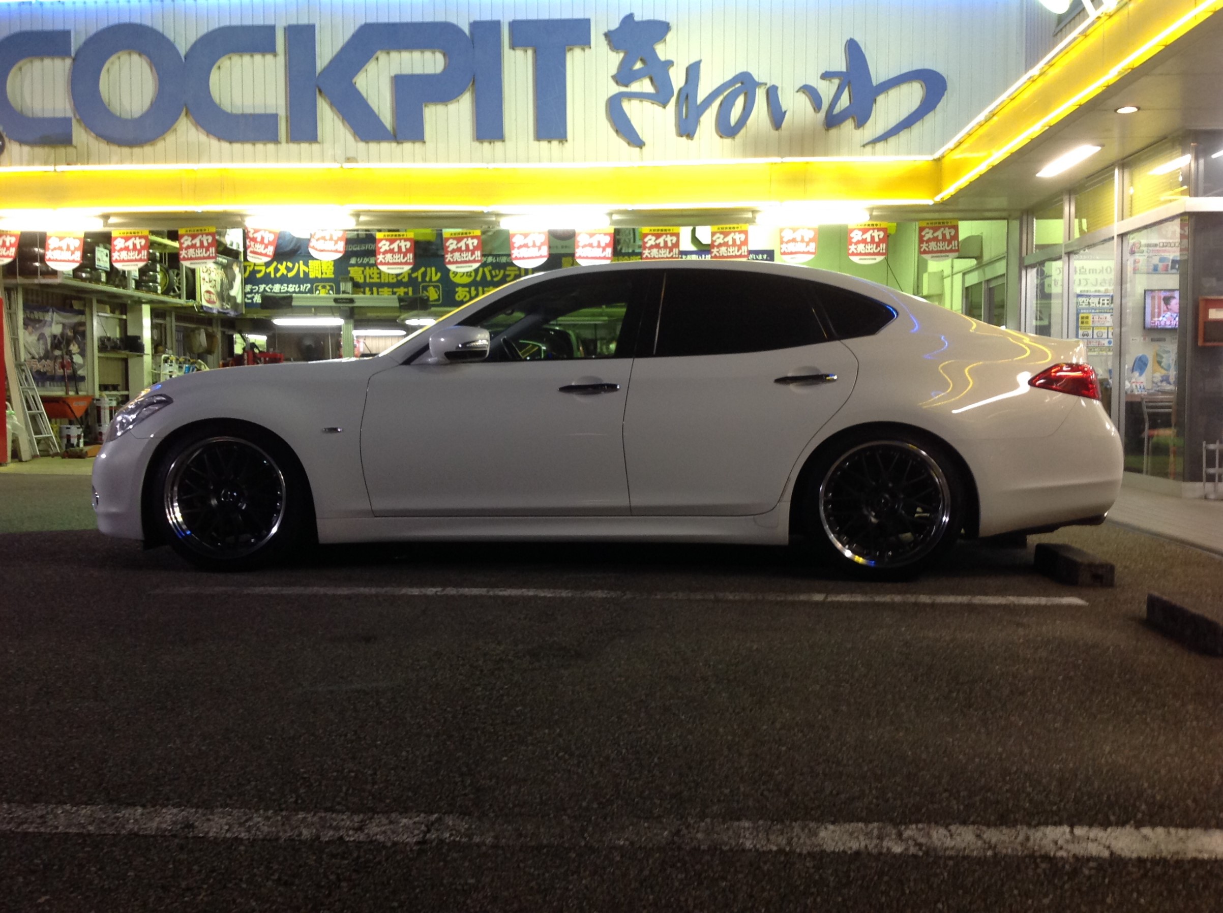 装着車両は、ノーマル車高がちょいと腰高な日産フーガさん ♪