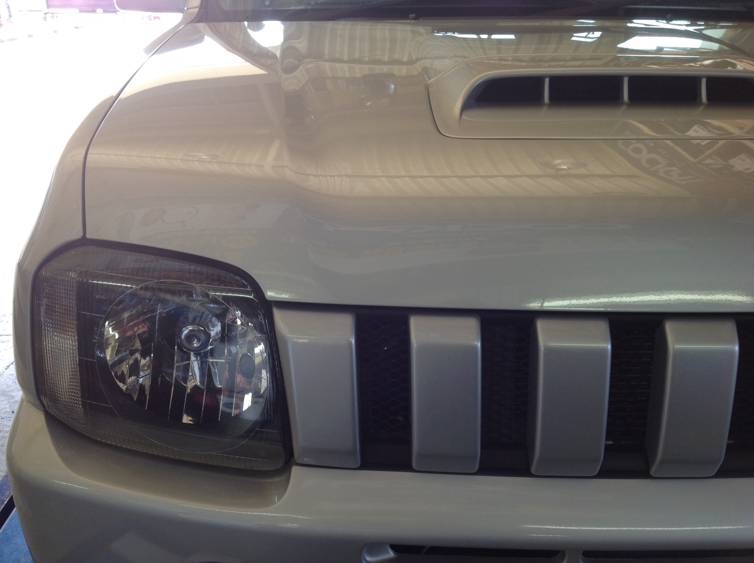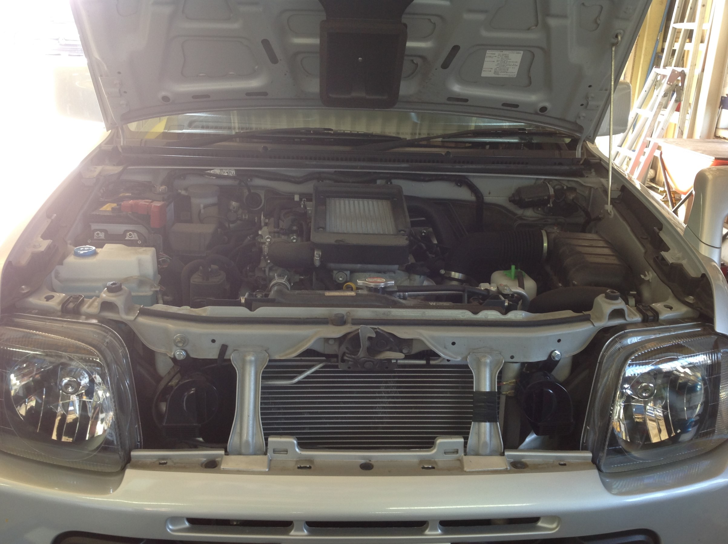 JB23Wジムニーさんは簡単にグリルが外れますので、