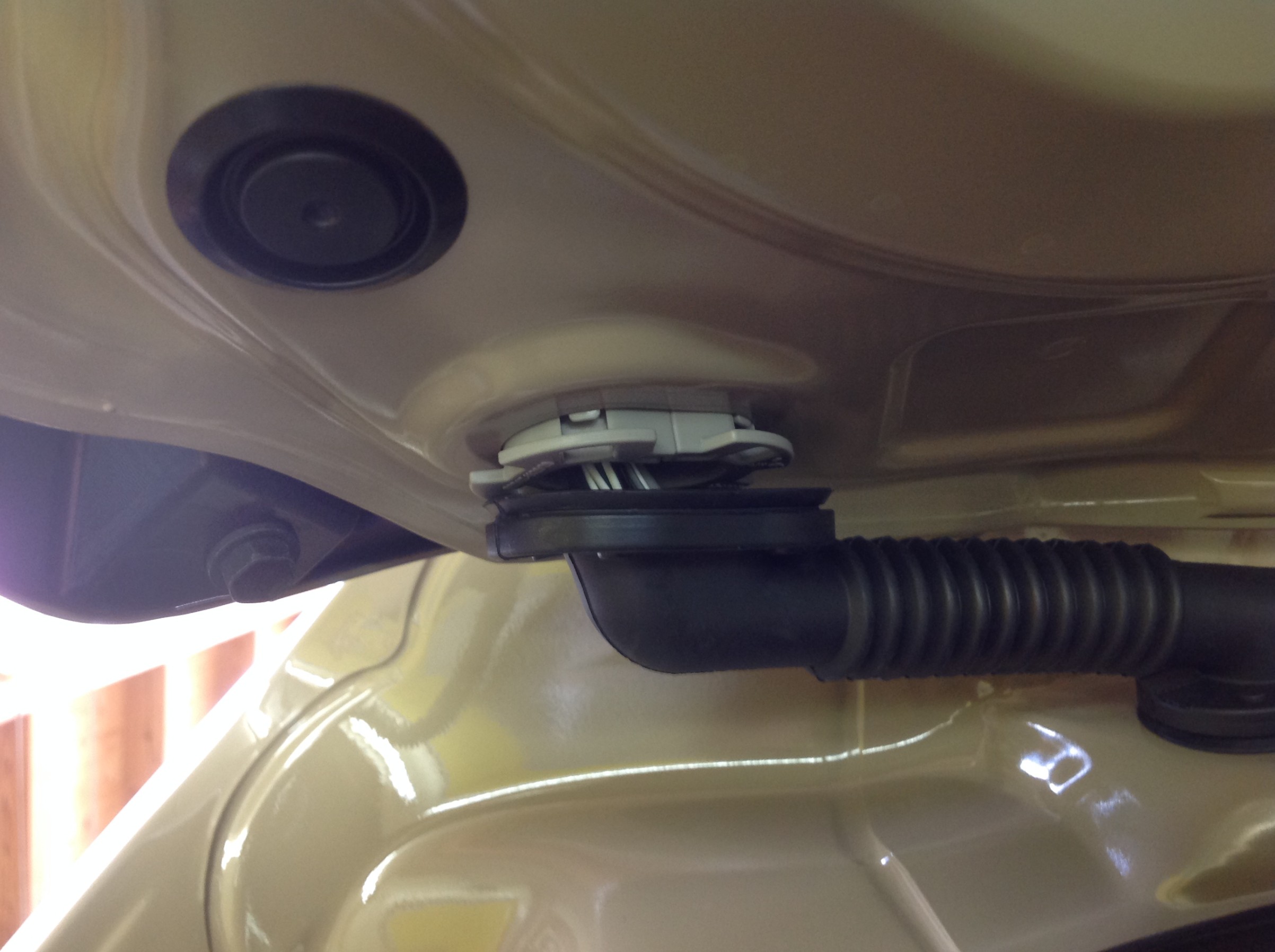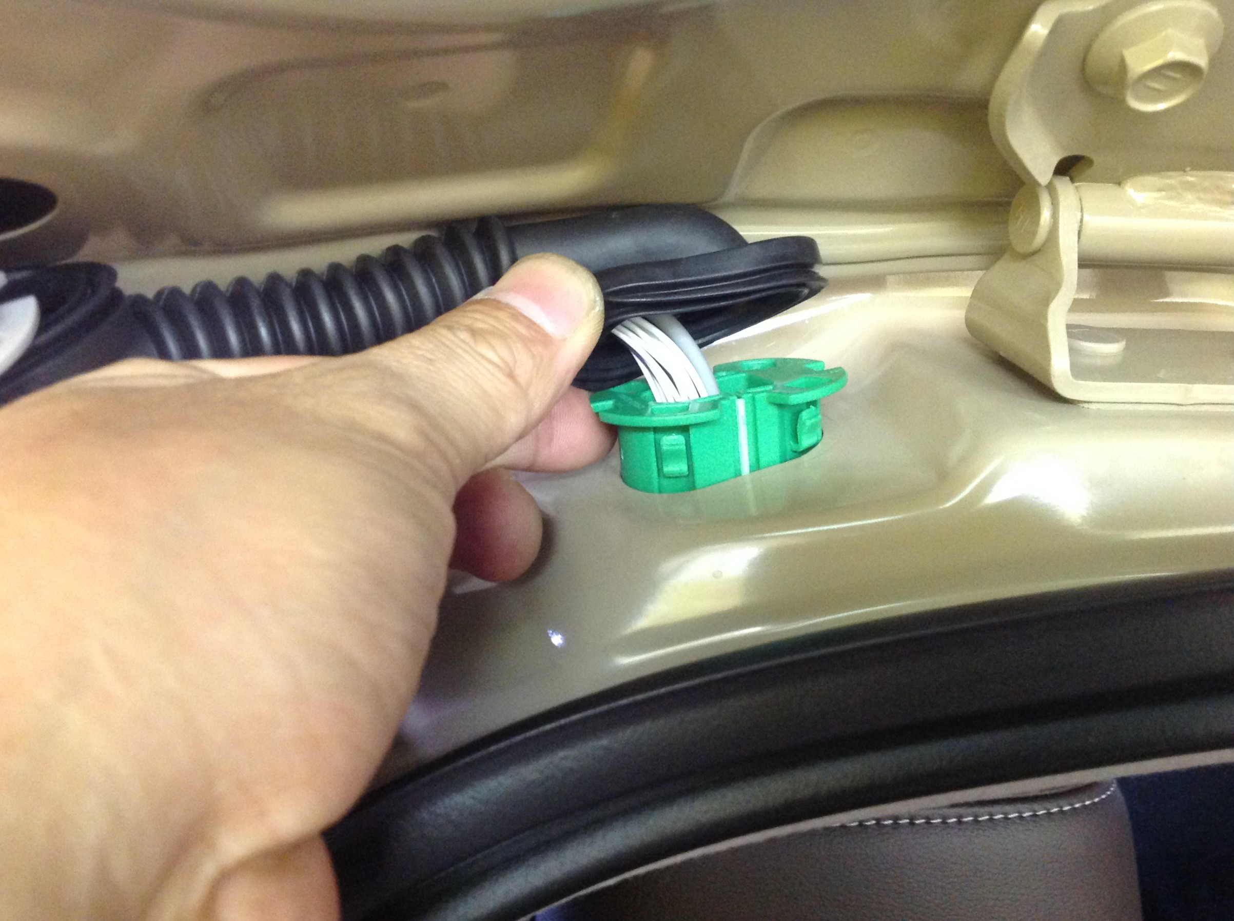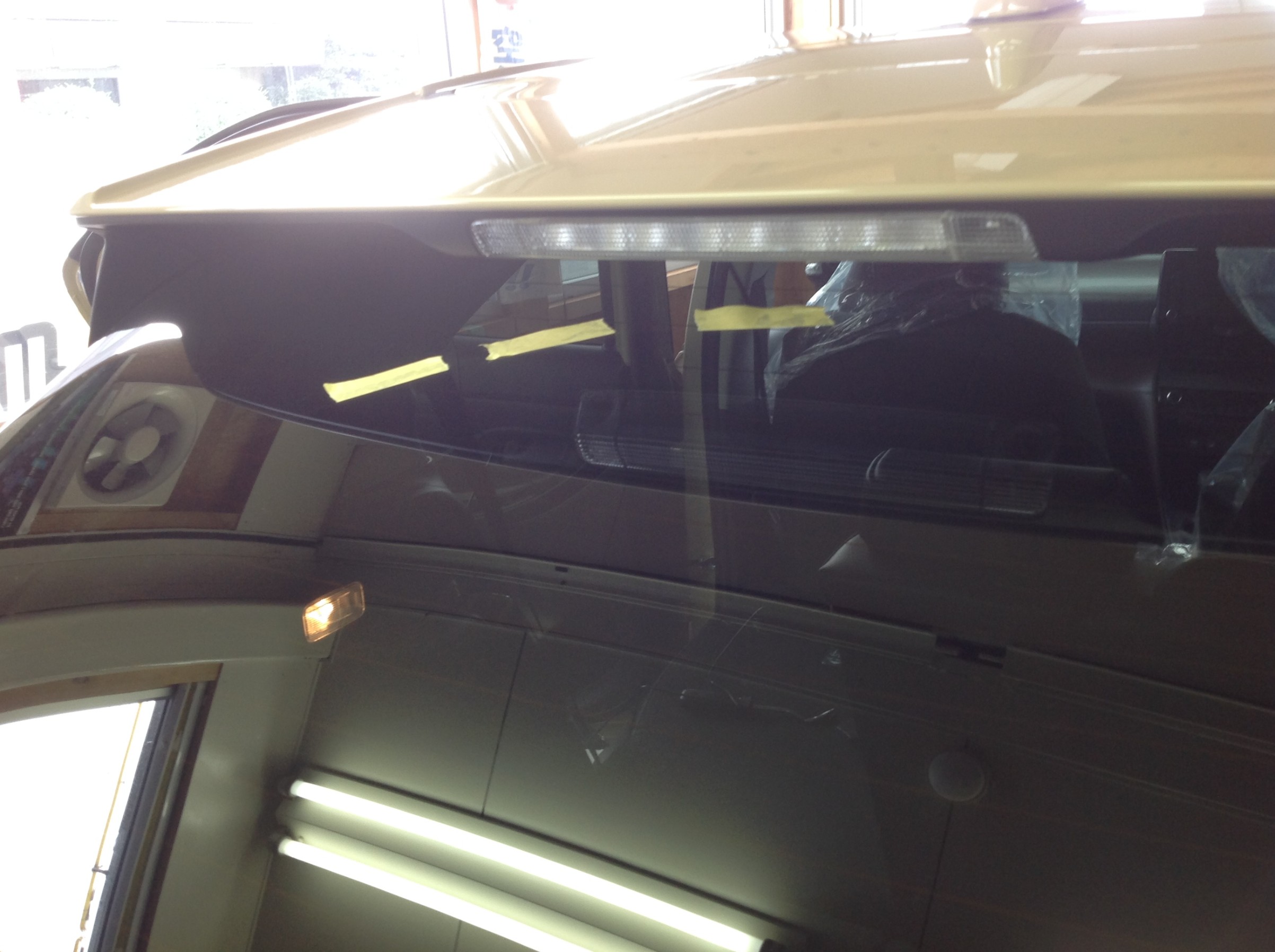 まずは室内からリアゲートに向けて入っているチューブ内のカプラーの取り出し作業 ♪