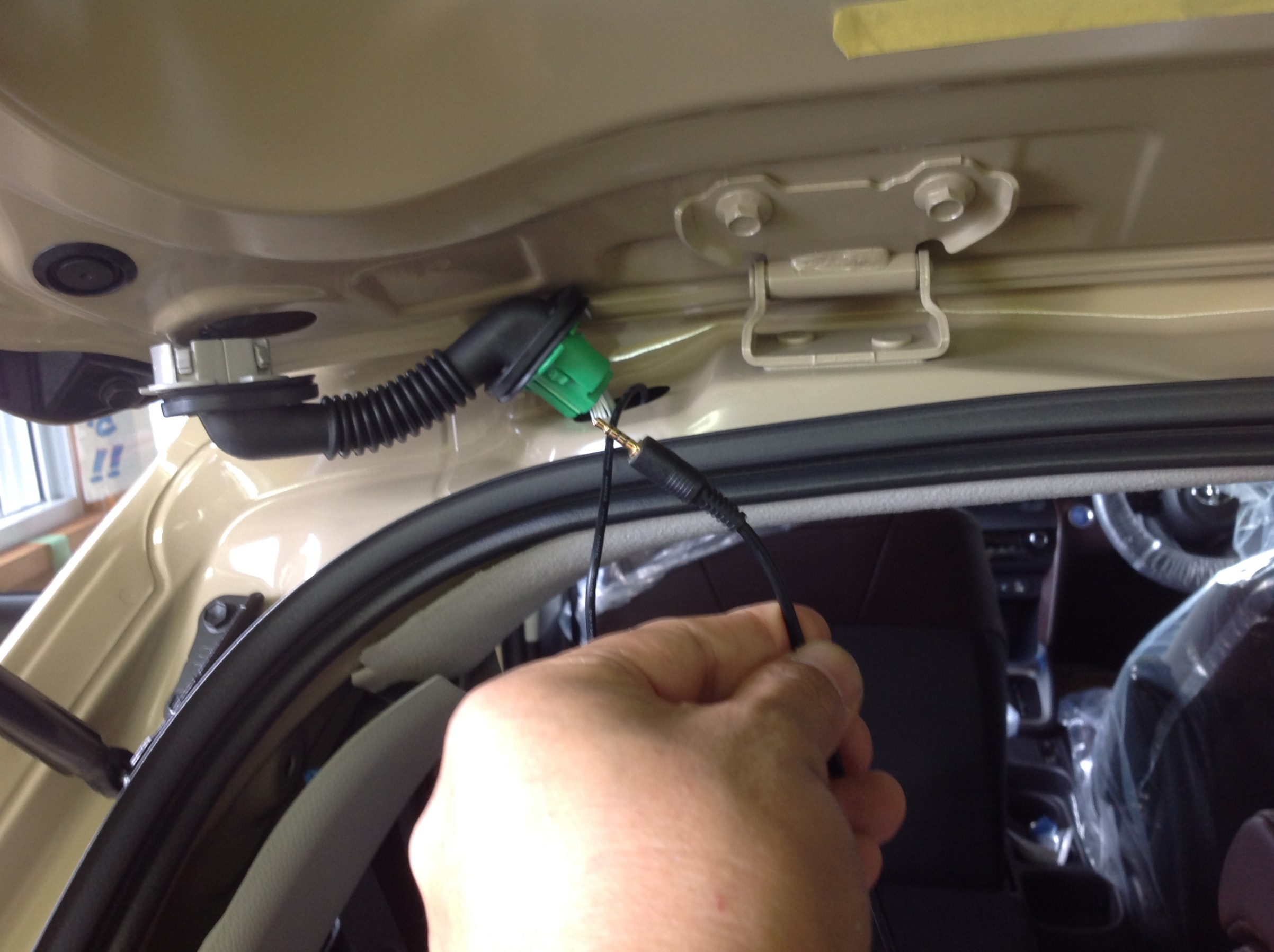 車内から配線を通していき、リアカメラの装着位置出し ♪