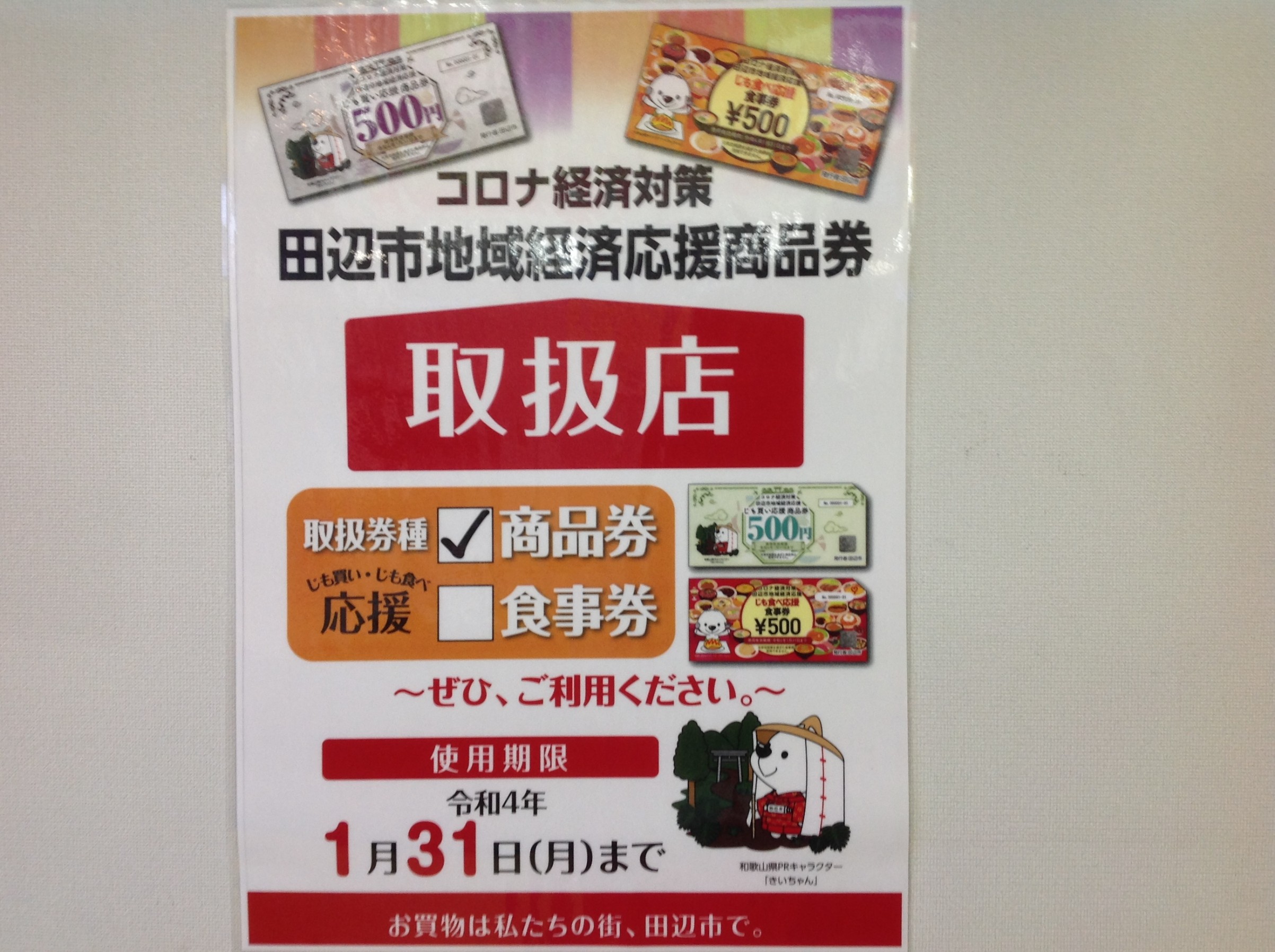 2021年9月25日 ツイート 地域限定ではありますが、田辺市地域経済応援商品券の配布が始まりました 。 田辺市に店舗を置く当店では、コチラの商品券がご利用可能です ♪ 使用期限は令和4年の1月末まで可能ですので、余すこと無くご利用下さいね~♪ Prev Next
